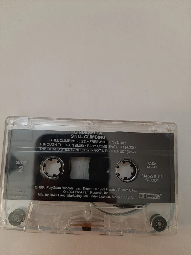 Cinderella Still Climbing Long Cold Winter Rock Music Cassette Tape Lot Of 2 In good pre-owned condition may show signs of wear from use/handling/storage/display. Please view all pics for condition/details/flaws/issues. SOLD AS IS UNTESTED There are lite scratches to case There are marks/spots/dirt/debris please see photos 1-7, there may be paint loss/sticker loss/tape loss please see photos 1-7, there is lite discoloration please see photos 1-7, there are surface scratches to item please see photos 1-7, please see all photos for condition/issues/details.