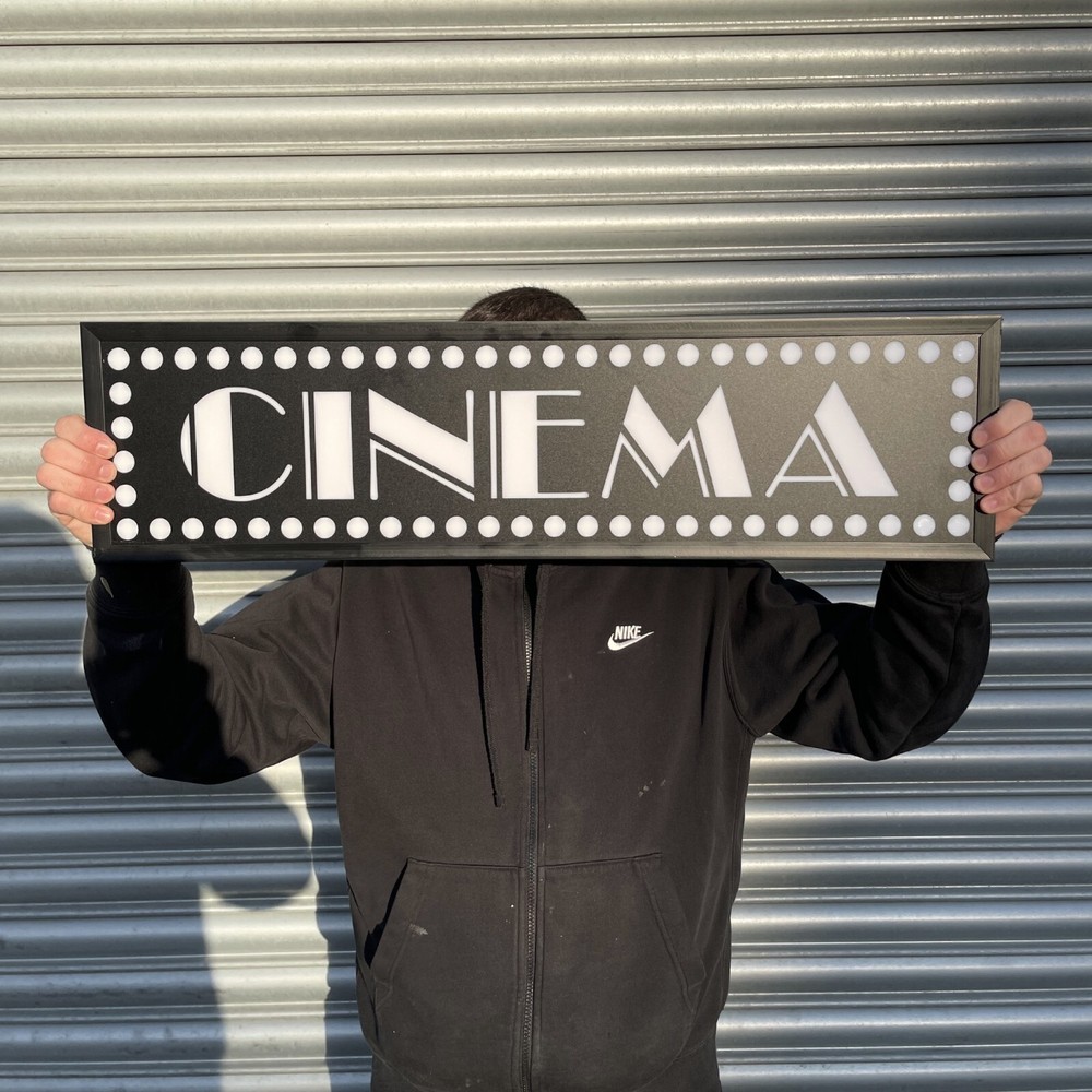 CINEMA ILLUMINATED LED WALL SIGN 750mm x 200mm x 20mm - 29.5" x 8" x 0.75" Supplied with a dimmer switch with flashing function made in the UK Please visit my eBay shop for more designs Customs signs available message for details shipped with a tracked service