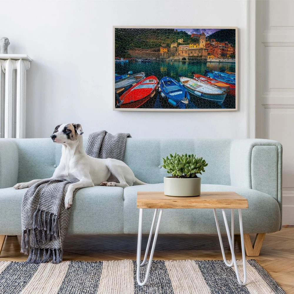 Unlock the Beauty of a Cinque Terre Summer with this Gorgeous 1000-Piece Puzzle from If you love putting together challenging puzzles and revealing stunning images of landscapes, nature, or rustic European cities nothing beats the quality and vibrance of a Cinque Terre 1000-Piece Jigsaw Puzzle. Designed with precision and elegance these challenging puzzles reveal boats floating along serene water with the majestic city and countryside behind them. A fun and interactive choice for anyone who loves puzzles get this Cinque Terre puzzle today and once you put it together you’ll quickly put it on your vacation list. Building Stronger Family Bonds Puzzles don’t just create a bright, colorful image they’re a fun way to bring family and friends together towards a common goal. They’re especially good for keeping active, reducing , and enjoying time together when you’re stuck inside or need an outlet to keep your mind focused and sharp. Quick-Snap Pieces We ensure each interlocking piece is carefully cut with smooth, durable, rounded edges so that they snap together cleanly with no forcing. All so you don’t have to worry about bends, tears, or crumpled edges. Exciting Gift Idea These premium puzzles make a great choice for birthday, holiday, or Christmas presents for and adults alike. Get for yourself today or get for your son, daughter, niece, nephew, or grandchild who loves puzzles and creating something beautiful from scratch. Product Details: 1000-Piece Jigsaw Puzzle Image of Cinque Terre, Italy Bright, Vibrant, and Colorful Pieces High Quality Recycled Cardboard Interactive Fun for and Adults Storage Box Included Premium Cinque Terre Puzzle – Capturing the breathtaking landscape of village near Tuscany this Cinque Terre jigsaw puzzle features beautiful views of the city and the water’s edge complete with small, colorful boats. Challenging, Fun, and Colorful – These 1000-piece puzzles for adults and make it exciting to unlock each new section as you bring the city to life. You’ll love putting it together alone or with friends to challenge your skills. Precision-Cut Pieces – Here at we use the highest-quality pieces in our puzzles for adults to ensure they fit together perfect. They’re also made from recycled cardboard to ensure eco-friendly sustainability. Display It Proudly When You’re Finished – Once you’ve put together this 1000-piece puzzle you can gloss it with a sealant or glue (not included) and create a poster or decorative piece you can add to a bedroom or living room. Trusted Quality and Customer Support – puzzles are designed for style, elegance, and quality. More importantly, they’re backed by unbeatable to ensure your total satisfaction from start to finish.