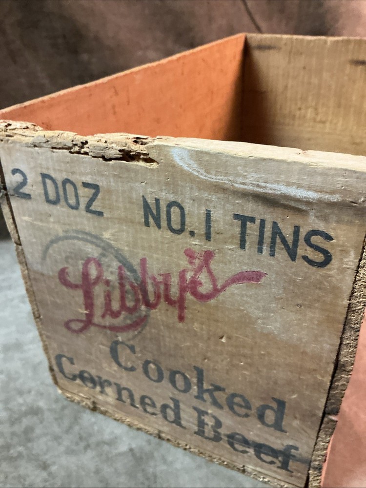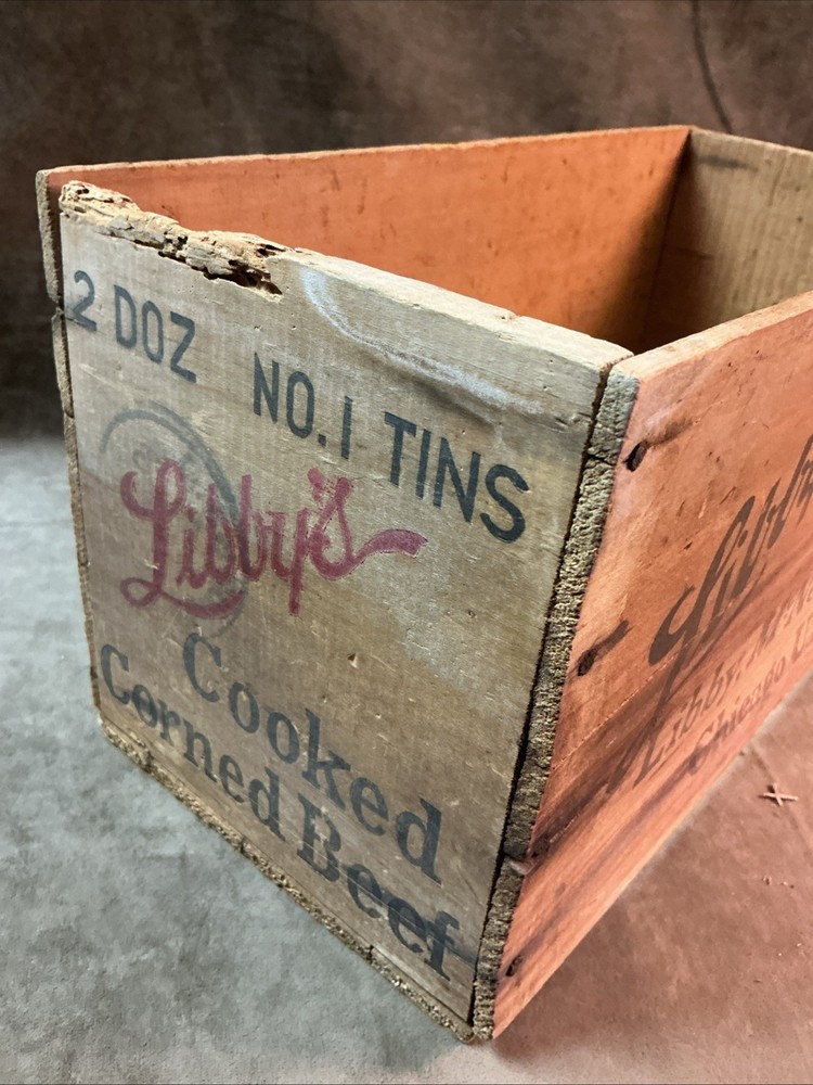 Circa 1920s Libby McNeill and Libby food products wood box cooked corned beef