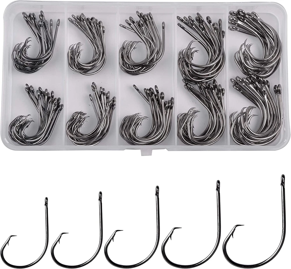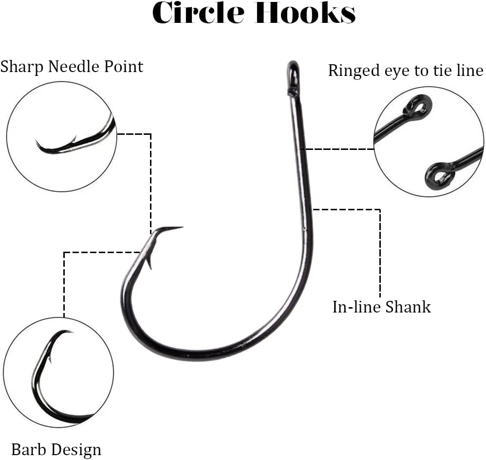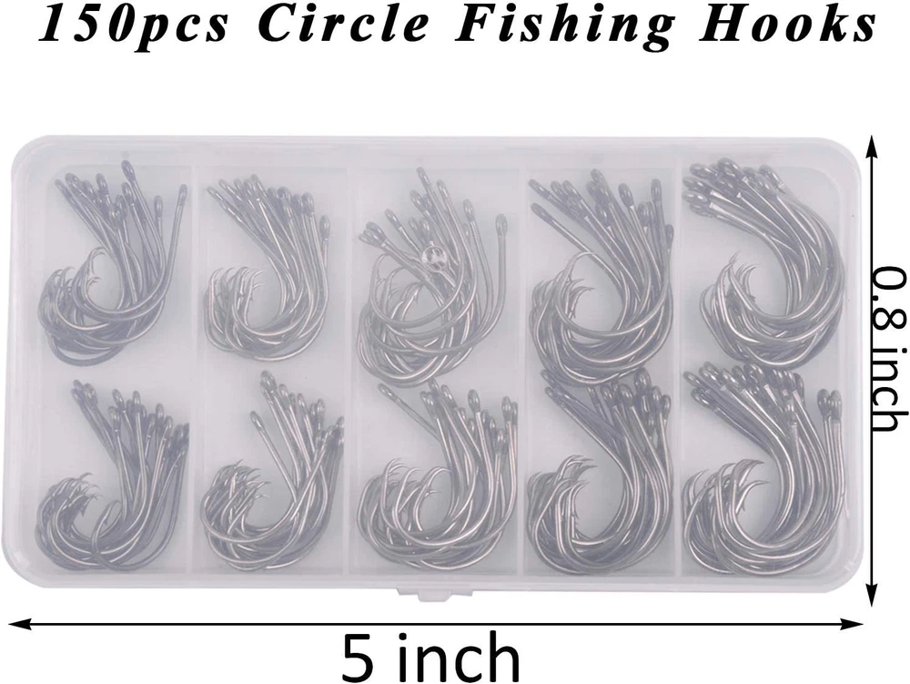 Circle Hooks Saltwater Fishing Hooks Set, In-Line Circle Hooks High Carbon Steel Fish Hooks Straight Eye Small Tuna Fishing Hooks Octopus Hook Wire Hooks for Saltwater Freshwater Fishing Quantity: 150pcs circle hooks set. 30pcs 1/0, 30pcs 2/0, 30pcs 3/0, 30pcs 4/0, 30pcs 5/0 with a handy plastic box Fishing hooks has chemically Sharpened, closed Straight Eye, special barb design, In-line shank, sharp needle point, great for catch and release In-line circle hooks designed to ensure that the hook point rolls in the corner of the fish's mouth and lowers fish mortality Saltwater circle hooks are made of High Carbon Steel, coated with black chrome. High Strength and Corrosion Resistance Circle hooks are perfect for catching bass, catfish, walleye, tarpon, redfish, snapper, sea trout, snook, and cobia. For both freshwater and saltwater fishing AGOOL Circle Hooks High Carbon Steel Hooks Chemically Sharpened in-line Straight Eye Barbed Point Hooks Features: 1.Every Hooks Is Precision Tooled to The Design At The Eye, Bend, Gap, Barb And Point 2.Straight Eye 3.Round Gape And Barbed Sharp Point design for Less Mortality Rate 4.It Is Suitable for Carp and Other Big Fish, Especially Suitable for Carp Fishing 5.Material: High Carbon Steel Package Includes: 50pcs Circle Hooks Kit: 20pcs 5/0, 10pcs 6/0, 10pcs 7/0, 5pcs 8/0, 5pcs 9/0 150pcs Circle hooks kit: 1/0:30pcs,2/0:30pcs ,3/0:30pcs, 4/0:30pcs, 5/0:30pcs,Plastic box package Style Modern Number of Pieces 150 Brand Name AGOOL Point Style Needle Point Color 150pcs (1/0-5/0) Brand AGOOL Material High Carbon Steel Package Weight 0.13 Kilograms Target Species Redfish, Bass, Catfish, Trout, Common Snook, Walleye Size 5/0 Item Package Dimensions L x W x H 5.87 x 3.07 x 0.75 inches Manufacturer AGOOL Shipping Fast shipping is very important for us. Our standard US shipping service is FREE. Your order will be shipped within 2-3 business days upon full payment received. Your order will be delivered within 2-3 business days after the handling time. We only ship to the confirmed PayPal address. We reserve the right to cancel any order for any reason at any time. We are not responsible for undeliverable addresses. Returns and payment We offer a 30 days return policy from checkout winning date. We allow only PayPal as payment method FeedBack Your feedback very important to us, after you get your package and you are satisfied with our service please leave us positive feedback If you have any problem with your order / any questions please before leave any type of feedback For any questions, using eBay contact system Please visit our eBay store to check out other items for sale! Thank you for shopping at our store.