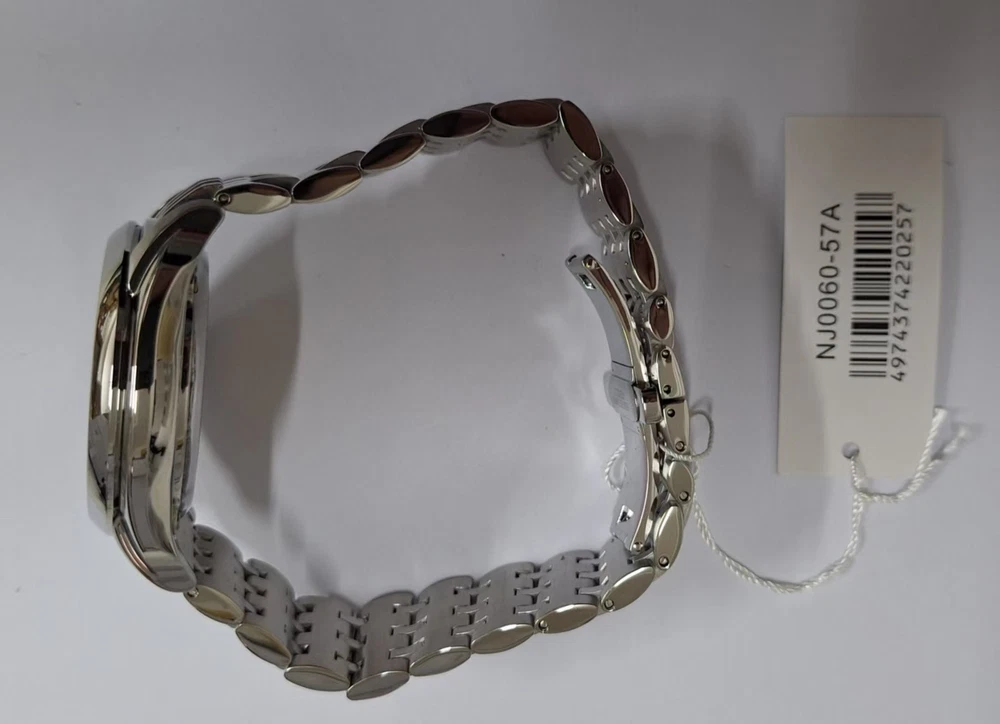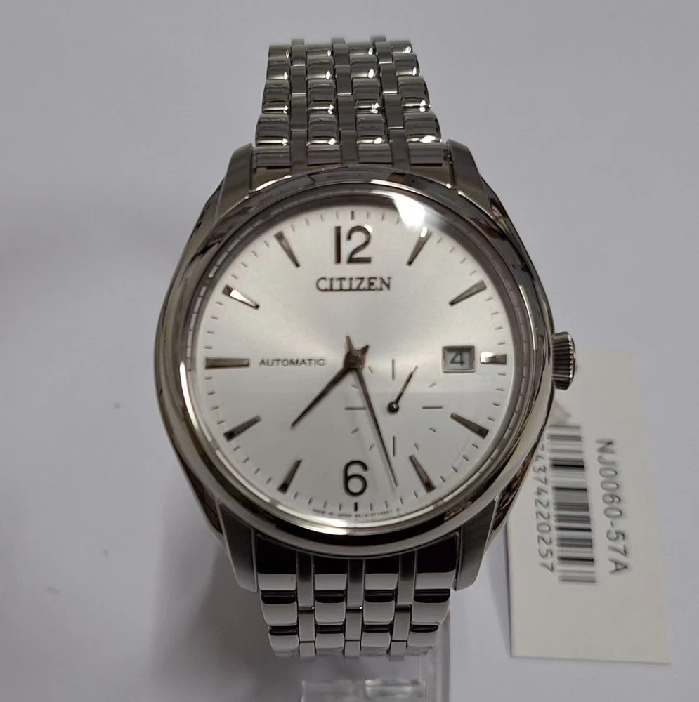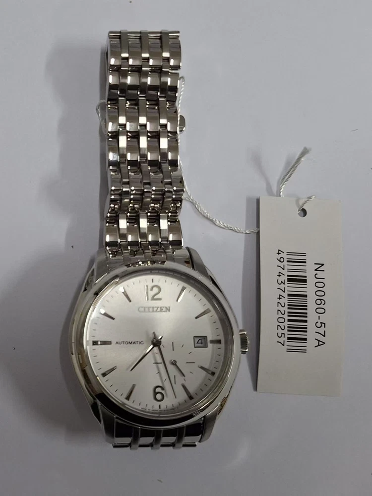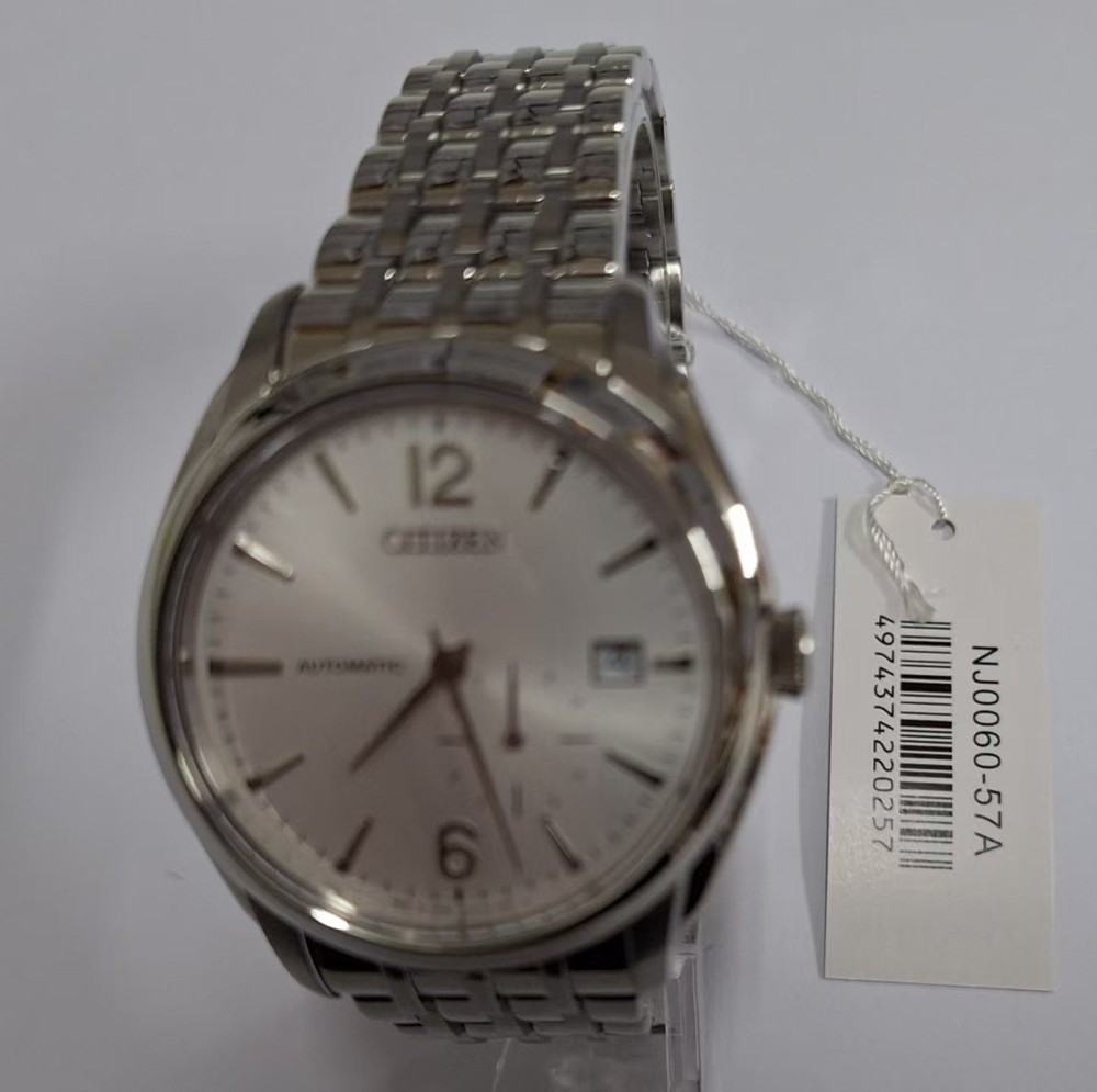 The Citizen NJ0060-57A is a men's automatic mechanical watch from Citizen, featuring a stainless steel case and a white dial. Main Specifications This watch belongs to Citizen's mechanical watch collection and offers a classic automatic mechanical movement. Features Details Brand: Citizen Model: NJ0060-57A Movement Type: Automatic Mechanical Movement (Caliber 8213) Gender: Men's Case Material: Stainless Steel (316L) Strap Material: Stainless Steel (316L) Dial Color: White Size: Approx. 38 x 38 mm Thickness: Approx. 12 mm Water Resistance: 100 meters (based on some retailer information) Other Functions: Date Display