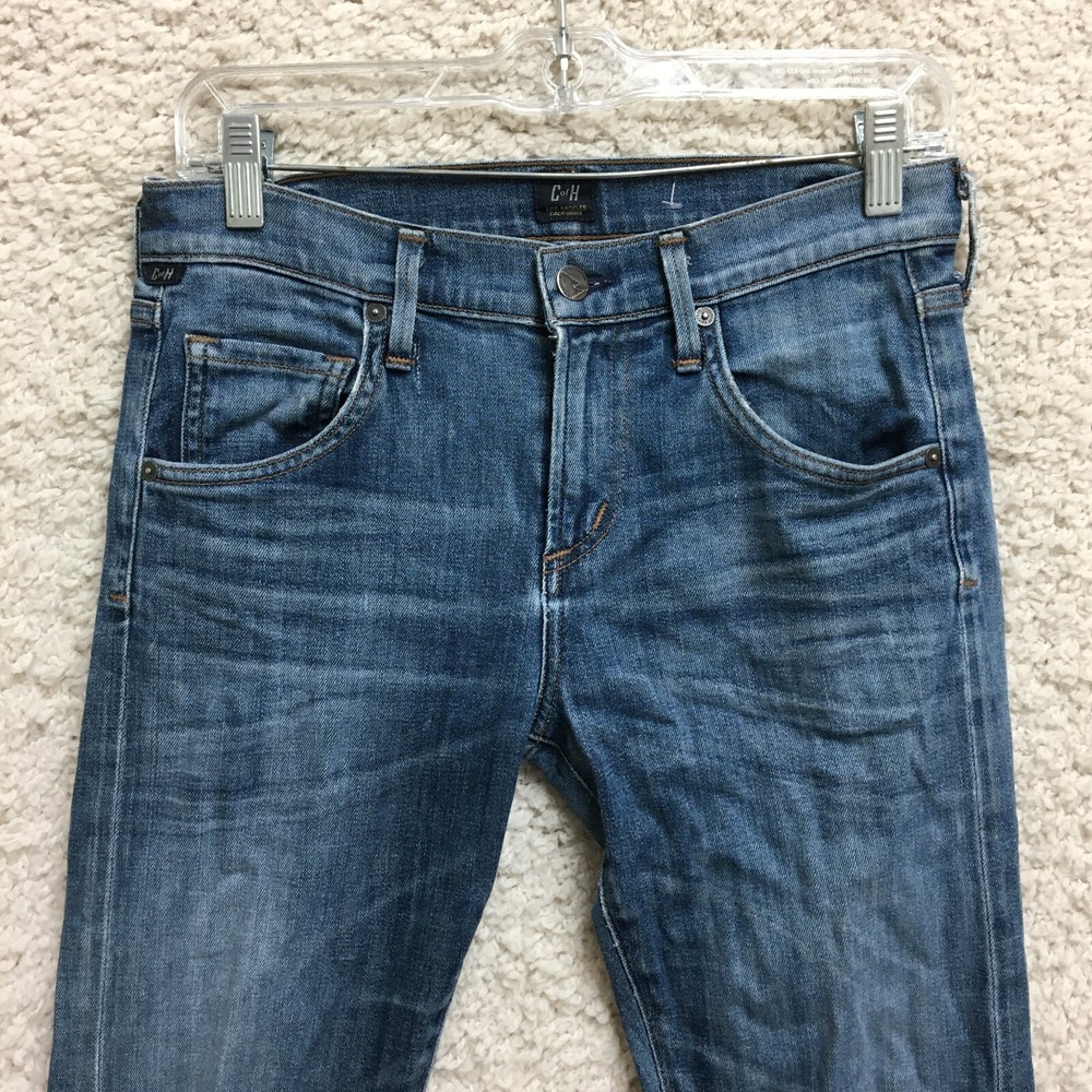 Size: 28 Rise: Mid (8.5-10.5 in) Brand: Citizens of Humanity Material: Cotton, Cotton Blend Closure: Button, Zip Pattern: Solid Seller Notes: “Very Good Used Condition. Please, See Pictures for Full Condition and Measurements.” Pocket Type: 5-Pocket Design Color: Blue Fit: Slim Type: Jeans Inseam: 27 in Features: Breathable, Easy Care, Pockets, Slimming, Stretch Size Type: Regular Season: Fall, Spring, Summer, Winter Fabric Type: Denim Garment Care: Machine Washable Fabric Wash: Dark Country/Region of Manufacture: United States Accents: Button, Logo, Zipper Style: Boyfriend Department: Women Waist Size: 28 in