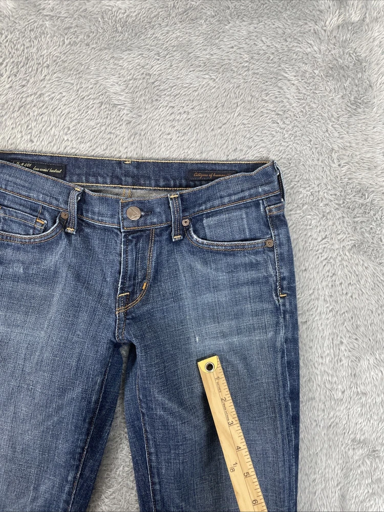 Citizens Of Humanity Jeans Women's 27 Blue Kelly #001 Low Waist Boot - Hemmed Length has been hemmed Waist measures slightly under 29" Worn spot on the hip/thigh CHECK THE MEASUREMENTS. Title only states tag size. Sizes can vary. Condition is used. Good used condition with typical wear. No losses to note. See photos for condition and detail. Please look carefully at all photos. The photos are an important part of the description. If you have questions, please ask. Returns are accepted within 30 days of purchase. The item must be returned in exactly the same condition as received. Items will be inspected, serial numbers checked, etc. Shipping fees are not refundable.