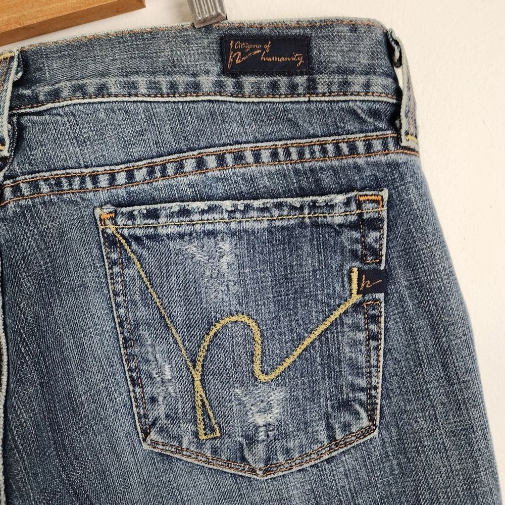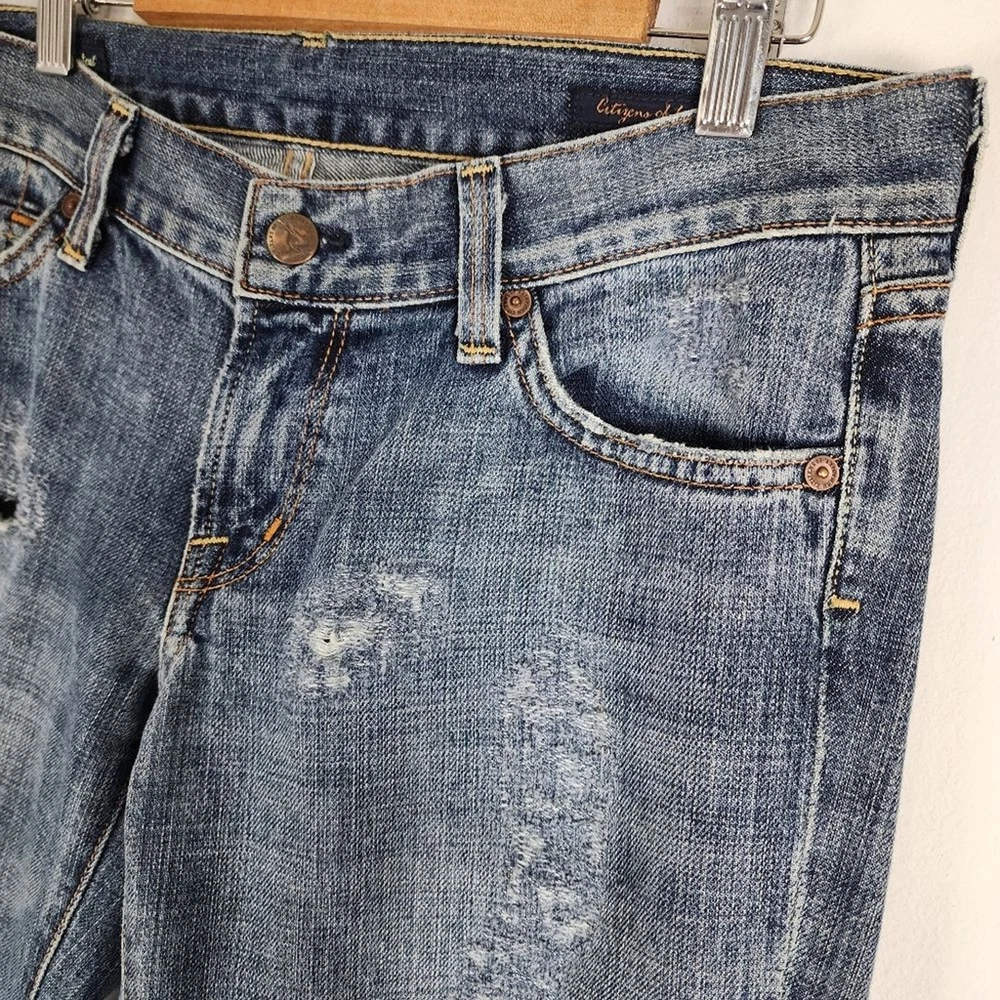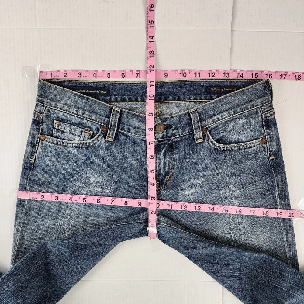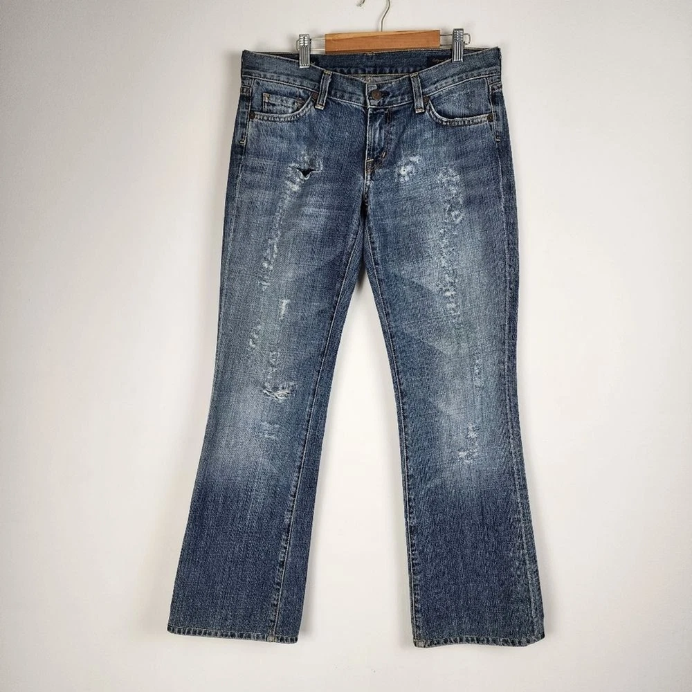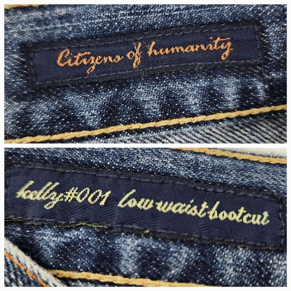Citizens of Humanity by Jerome Dahan Kelly 001 Low Waist Bootcut Distressed Jeans - Size 29, approx. measurements in pictures - Ripped, Distressed - Low Waist - 100% Cotton - Pre-owned Shipping Same or Next Business Day! Thanks for watching! ripped Jeans Distressed low-waisted low ris3 flare Legs denim casual Party Streetwear retro 70s 90s bohemian hippie casual vintage vibes Elevate your denim game with these Citizens of Humanity Kelly 001 low waist bootcut jeans. The distressed detailing adds a touch of edgy style to the classic blue color, making them a versatile addition to any wardrobe. The jeans are made for women, with a regular size type, and feature a bootcut style that flatters any body type. The Kelly 001 model is known for its high-quality construction and attention to detail, making these jeans a must-have for any denim enthusiast. They are part of the Clothing, Shoes & Accessories category, specifically Women's Clothing and Jeans. Add these jeans to your collection and step out in style.
