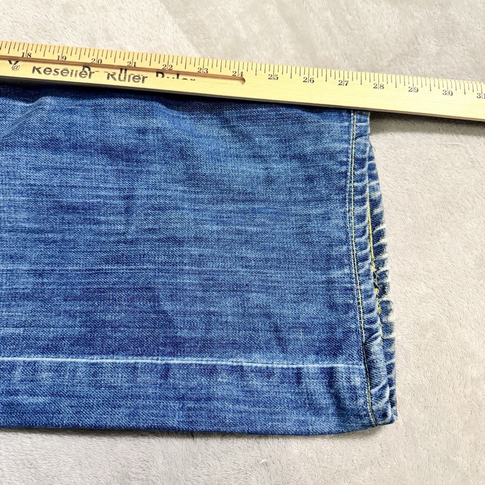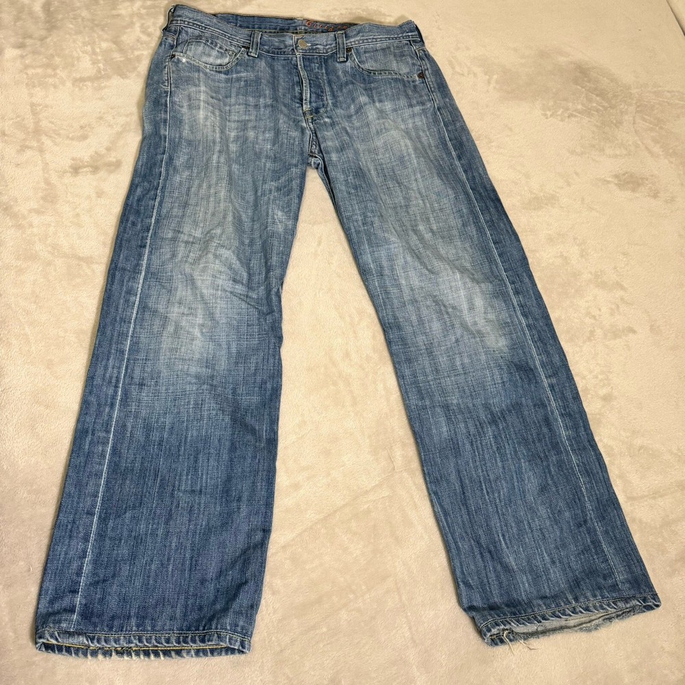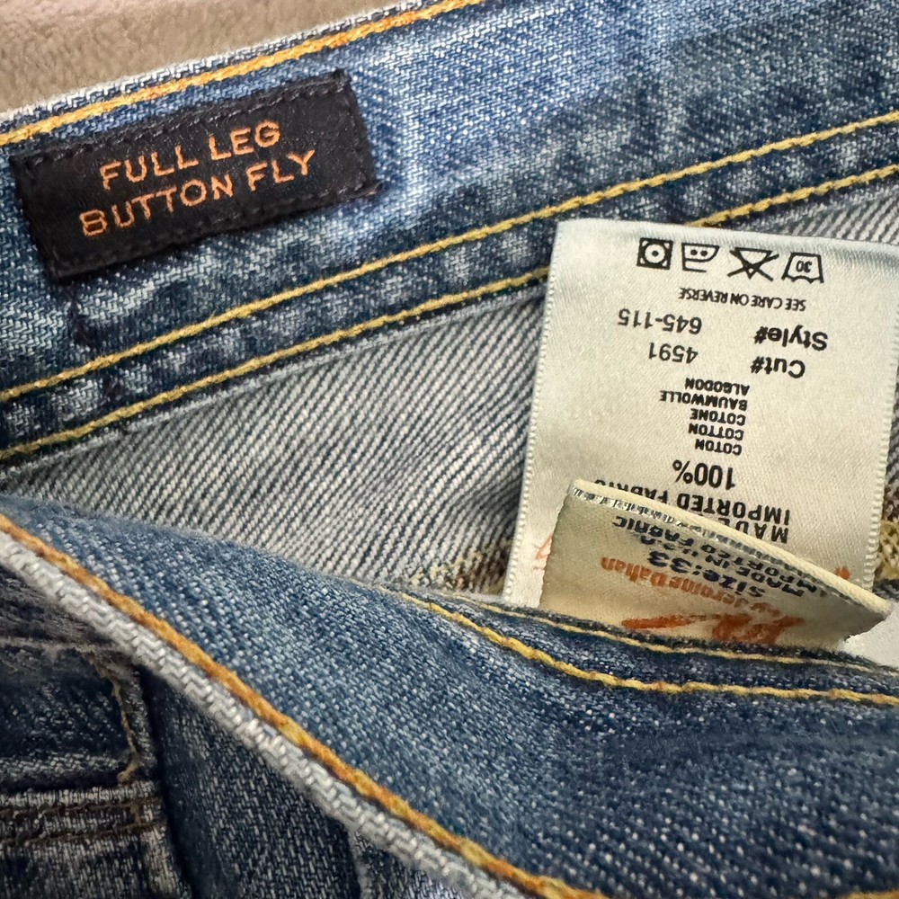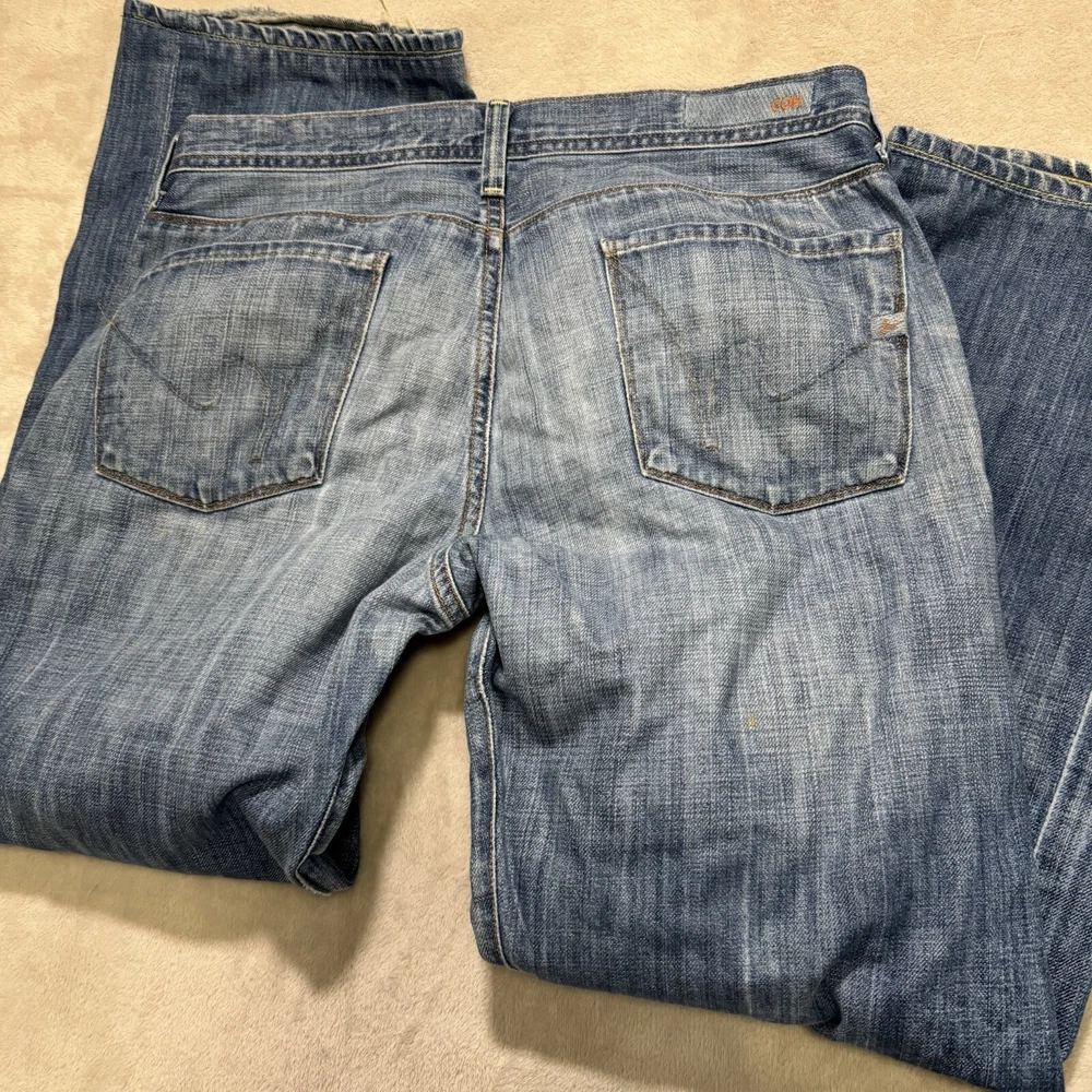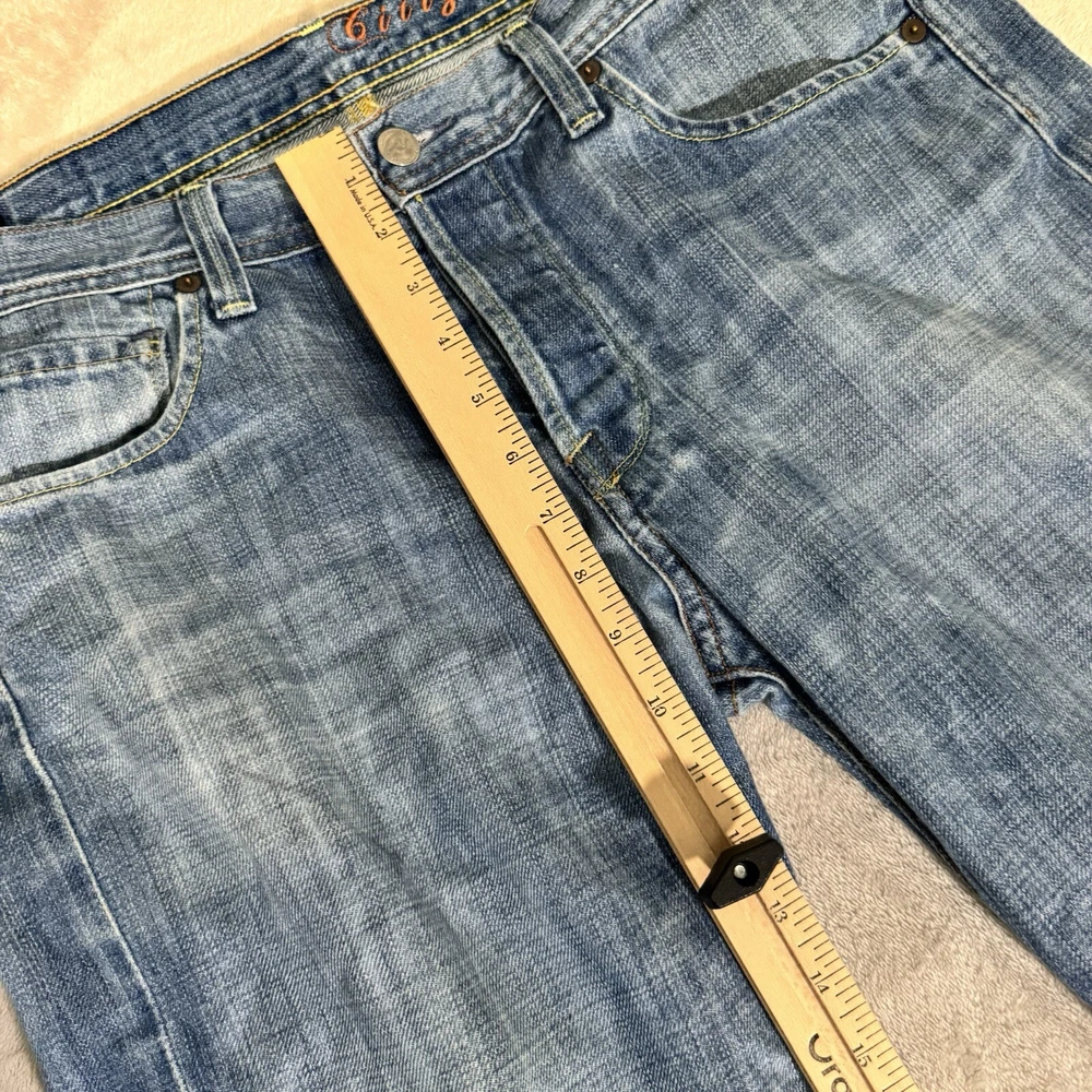 Elevate your denim game with these Citizens of Humanity jeans for men. The full leg style and low rise waist make for a comfortable fit, while the button fly closure and 5-pocket design add a touch of classic style. The distressed and stretchy cotton blend fabric wash well in any season, whether you're going for a casual or dressy look. The jeans are made in the United States and feature a solid blue color with a light fabric wash. The waist size is 33 inches and the inseam is 29 inches. These jeans are perfect for any occasion and can be paired with a variety of outfits.