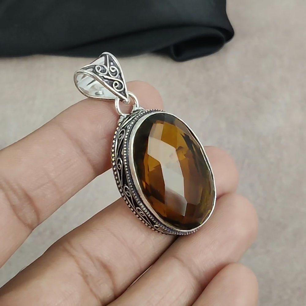 HomeCitrine Gemstone Pendant in 925 Sterling Silver Handmade Gift Jewelry