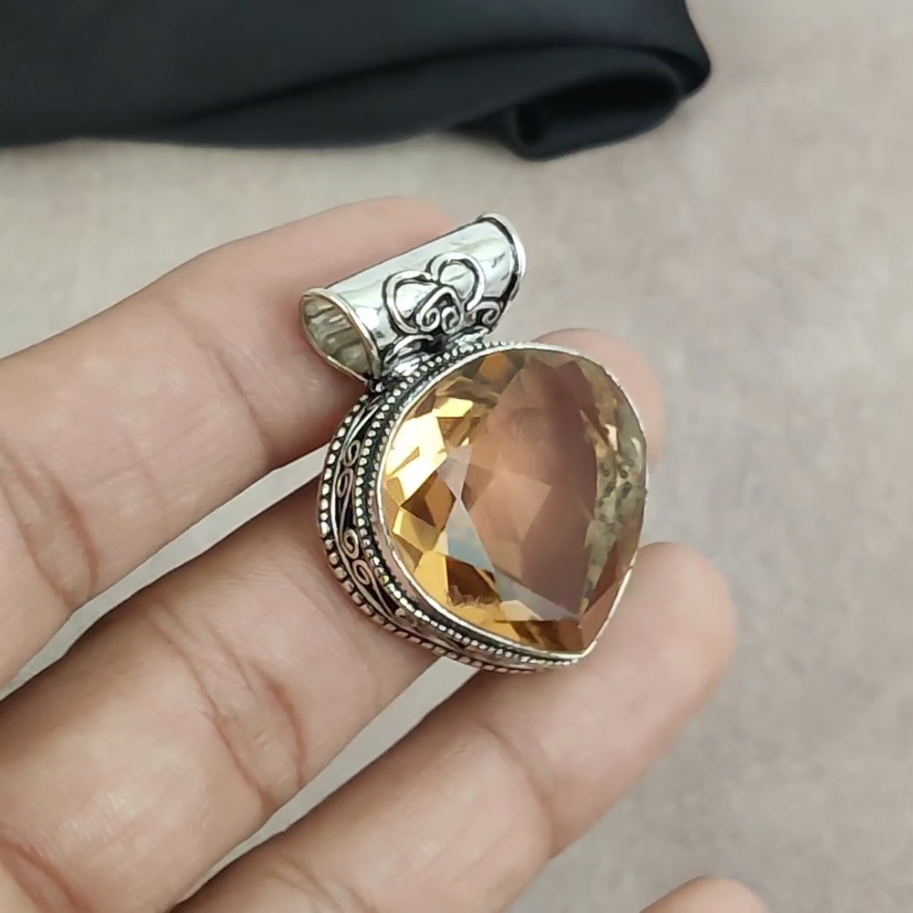HomeCitrine Gemstone Pendant in 925 Sterling Silver Handmade Jewelry Gift for Parties