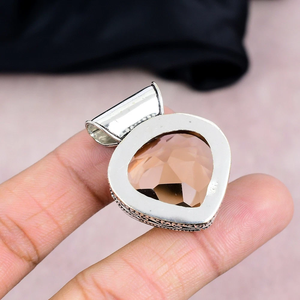 Amazing Smoky Quartz Gemstone Pendant 925 Sterling Silver Handmade Jewelry Gift