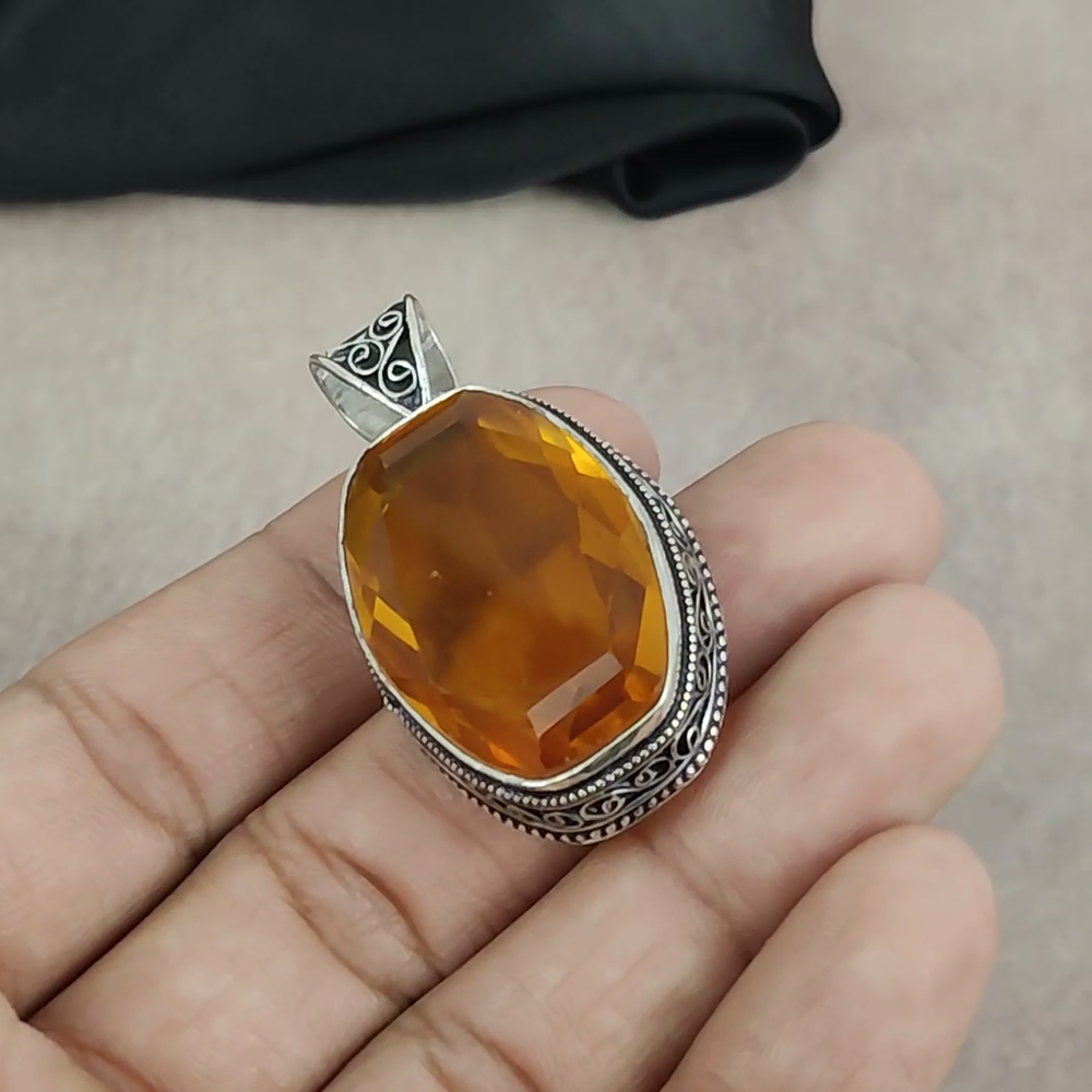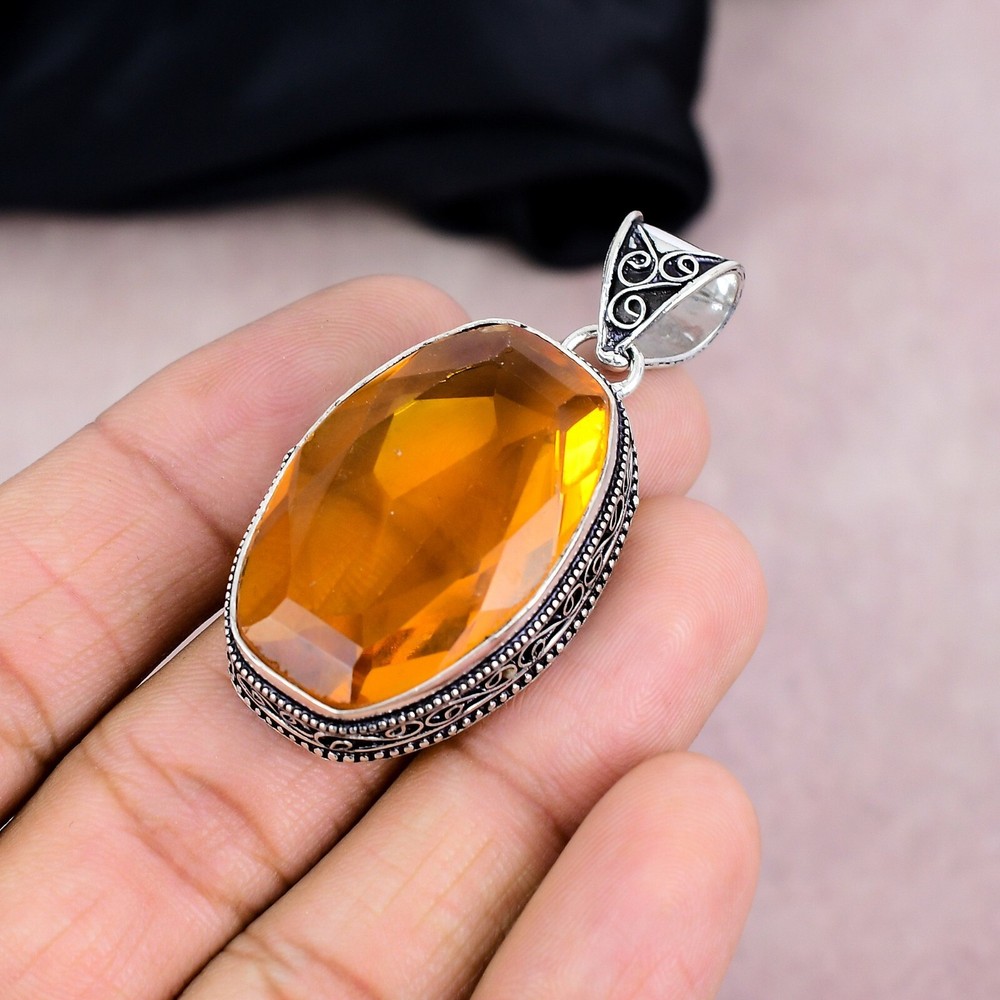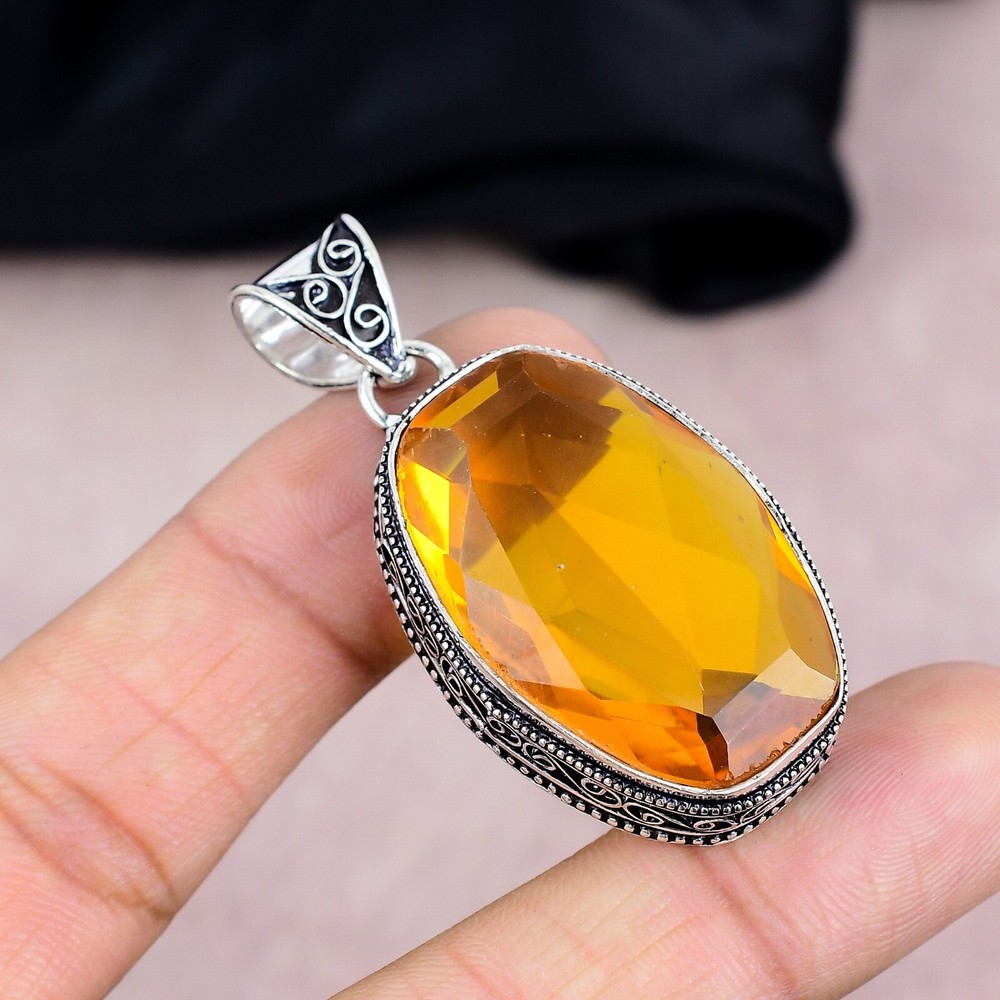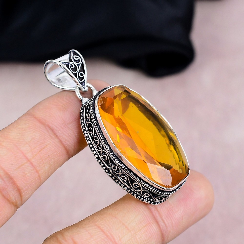 HomeCitrine Gemstone Pendant in 925 Sterling Silver Handmade Jewelry Gift