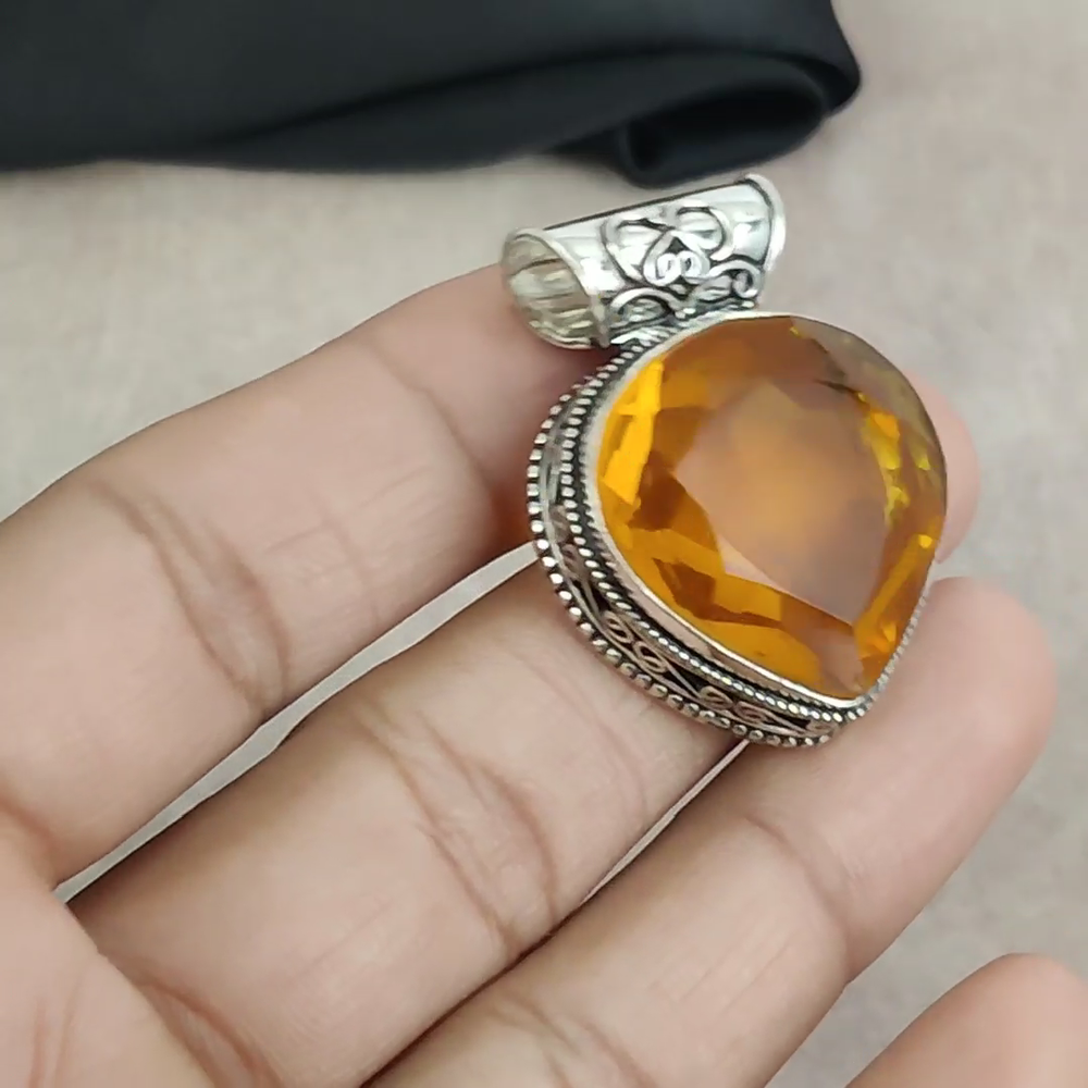 HomeCitrine Gemstone Pendant in 925 Sterling Silver Handmade Jewelry for Women