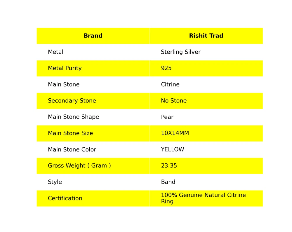 Dive into the magical temptation of this stunning Ring in attractive shape and design made of Sterling Silver studded with Citrine. An essential ornament to add in your jewellery collection! ---------------------------------------------------- ------------ Welcome to Our Shop Rishittrad ---------------------------------------------------- ------------ Gift For Women Band Ring Size 925 Sterling Silver Citrine Gemstone Description:- SKU : - RR-57-15 Metal : - Sterling Silver Metal Purity : - 925 Gemstone : - Citrine Gemstone Color : - YELLOW Gemstone Shape : - Pear Gemstone Origin : - Setting : - Ring Size : - US ---------------------------------------------------- ------------ -------- ------------ Elegant Birthday Tribute:- Discover the essence of sophistication with our Birthday Radiance collection. Crafted with exquisite attention to detail, each piece embodies the timeless elegance and symbolic significance of birthdays. Craftsmanship Excellence:- Meticulously fashioned from premium 925 sterling silver, our jewelry pieces boast a classic and enduring design. The rich tones of natural gemstones complement the silver setting, creating a captivating harmony that resonates with wisdom and truth. Symbol of Personal Growth:- Gift with intention and meaning. Our Emblem of Wisdom pieces symbolize heartfelt wishes for personal growth and enlightenment on the recipient's special day, making it a cherished gesture of love and appreciation. Versatile Elegance:- Measuring at 1.2 inches, our creations seamlessly blend into any ensemble, offering both daily wearability and the ability to elevate sophisticated looks for special occasions. Their adaptable design ensures they become treasured additions to any jewelry collection. Thoughtful Expression of Love:- Surprise your beloved with a gift that transcends mere adornment. Our Natural Gemstone 925 Sterling Silver collection is a stylish and thoughtful token, exuding elegance and emotion while conveying warmest wishes with enduring grace. Exquisite Presentation:- Delight in the joy of gifting with our meticulously presented pieces, elegantly housed in an exquisite gift box. Make their birthday truly memorable by presenting them with a gift that captures the allure and timeless elegance of sterling silver. -------------------------- Image Policy----------------------------- All images are captured in natural lighting. The product showcased is the exact item you'll receive. -------------------------- Delivery Policy-------------------------- Standard Shipping typically takes 15-25 days, depending on your location. For expedited shipping, additional charges will apply. --------------------------- Product Policy--------------------------- You will receive the exact product depicted in the photos. All items are meticulously handcrafted. ------------------------------ Order Policy------------------------------ We welcome orders from around the globe. Custom orders are also accepted. Bulk orders are available upon request. Should you have any queries about our products, please don't hesitate to reach out. Upon receiving your product, we'd appreciate your feedback. ⋆⋆✦✧✦⋆⋆⋆⋆✦✧✦⋆⋆⋆⋆✦✧✦⋆⋆⋆⋆✦✧✦⋆⋆⋆⋆✦✧✦⋆⋆⋆⋆✦✧✦⋆⋆⋆⋆✦✧✦⋆⋆ "Discover a captivating collection of handcrafted gemstone jewelry at our boutique." https://www.ebay.com/str/rishittrad0 ♥ Thank you for choosing us ♥