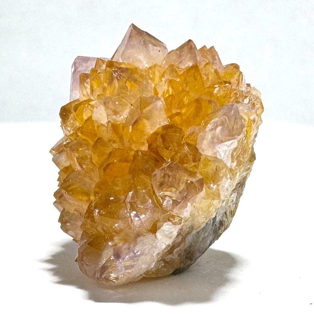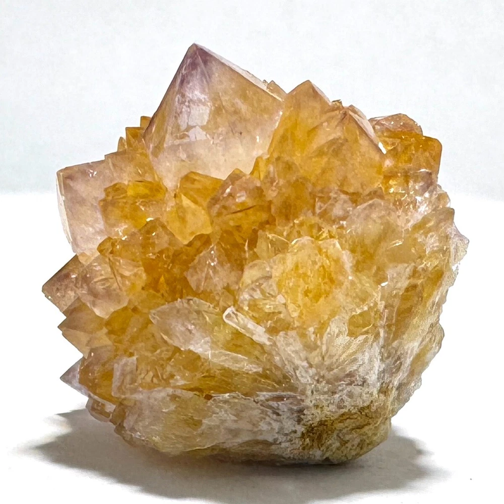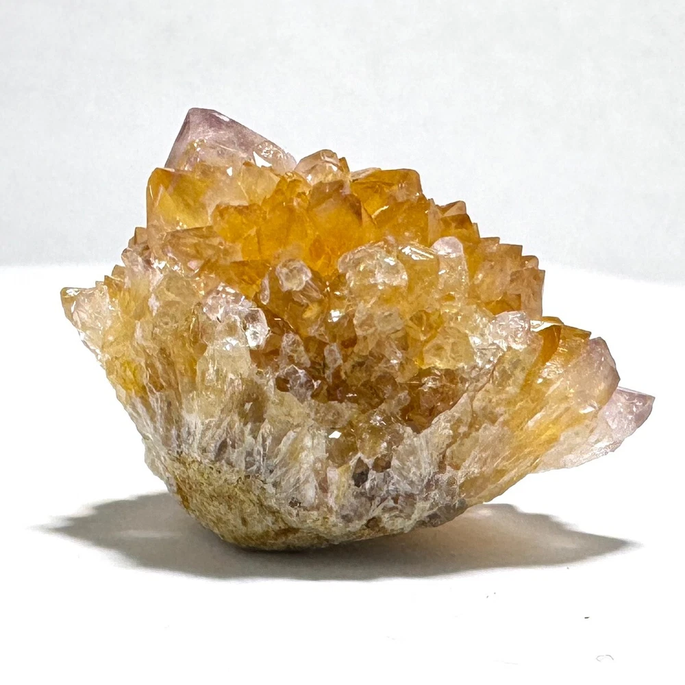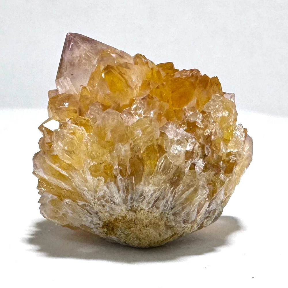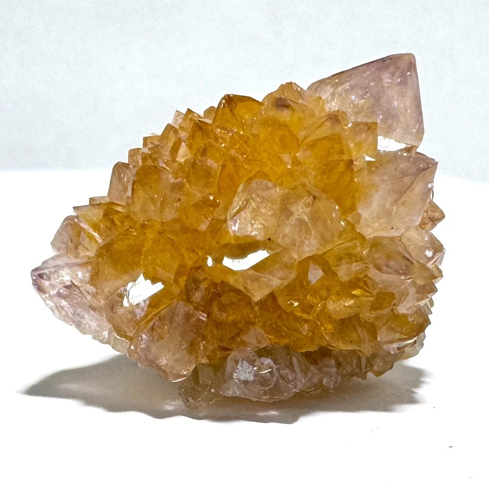 Cactus Quartz or Spirit Quartz Size Approximately 3 cm x 3.5 cm x 3 cm 22.3 g View My Other Items For Sale Visit My eBay Store Add me to your Favorite Sellers A cactus or spirit quartz is a quartz crystal that is encrusted by a second generation of smaller crystals grown on its prism faces. These crystals were first discovered in 1986 in the Magaliesberg Mountain Range near Pretoria, South Africa. It occurs as quartz, citrine and amethyst, and comes in a wide range of colors, including purple amethyst, violet amethyst, smoky, milky clear and golden citrine. FAQ/Tips Crystals are priced by quality, color and size. Purple amethyst is more highly prized and will cost more for a smaller lesser quality crystal. Lavender is the most common color and where you will find the best quality/value for price Crystals change colors with changes in type angle and intensity of light. Color may also vary between monitors. Pictures were taken in bright natural light. We do our best to give you many views so you can judge the quality of the given crystals. If you have questions please ask before bidding or buying. Many of the crystals have special color properties: Many have phantoms, not just the ones we?ve indicated. Some have ?floating? purple tips. The placement of darker purple against purple or white crystals appears to change as the crystal is turned. Many are a mixture of citrine and amethyst. The ones called ?Golden Healers? or ?Sunshine? have a rainbow effect on crystal faces. We value your feedback please contact us with problems. Items are returnable. Track Page Views With Auctiva's FREE Counter