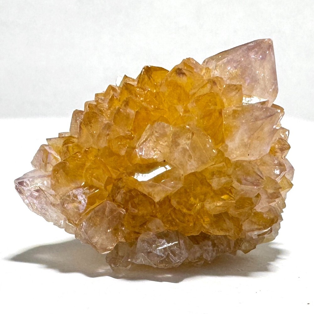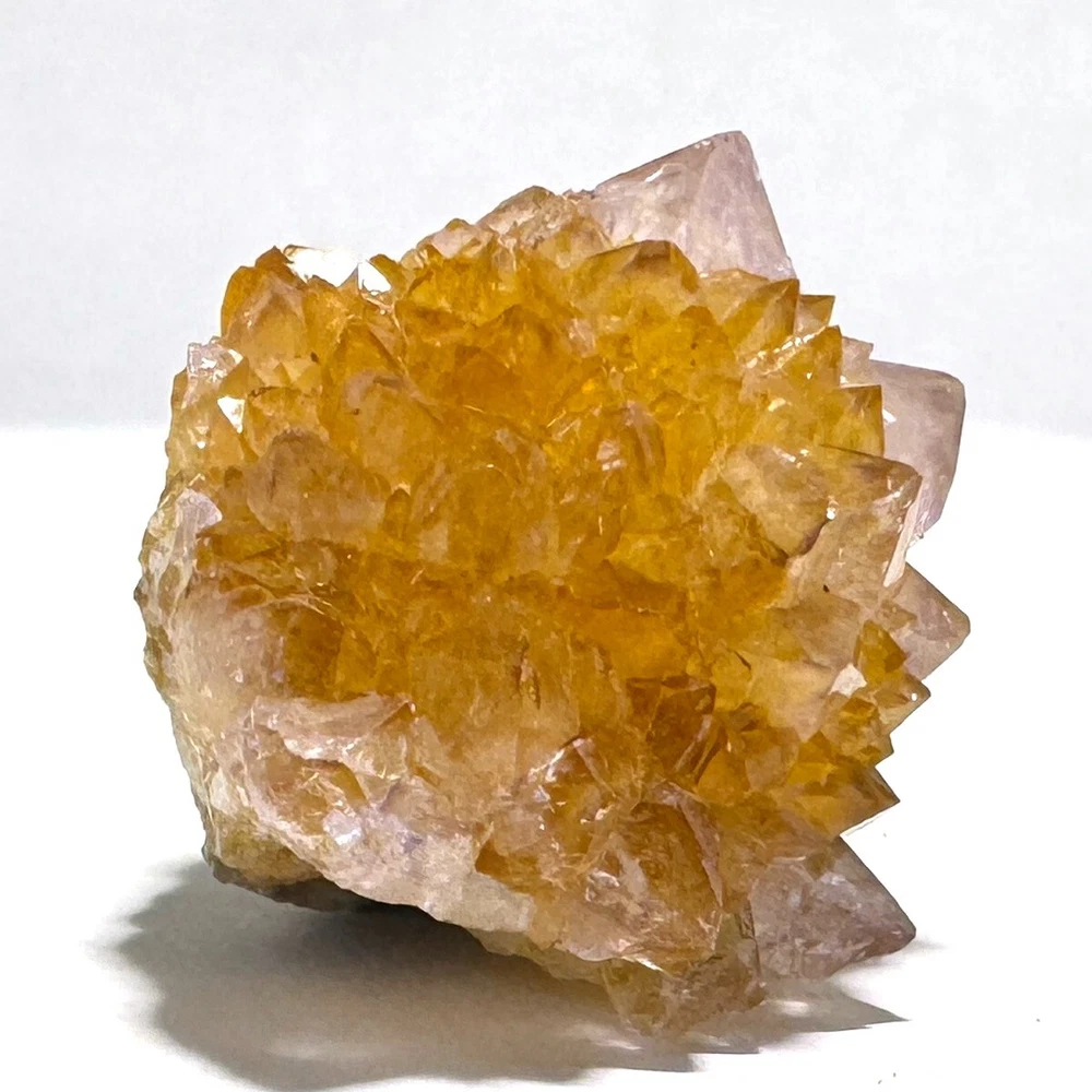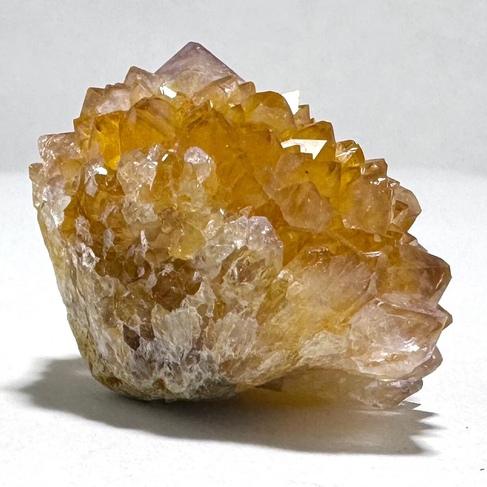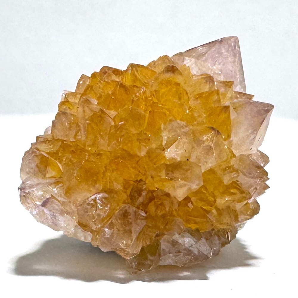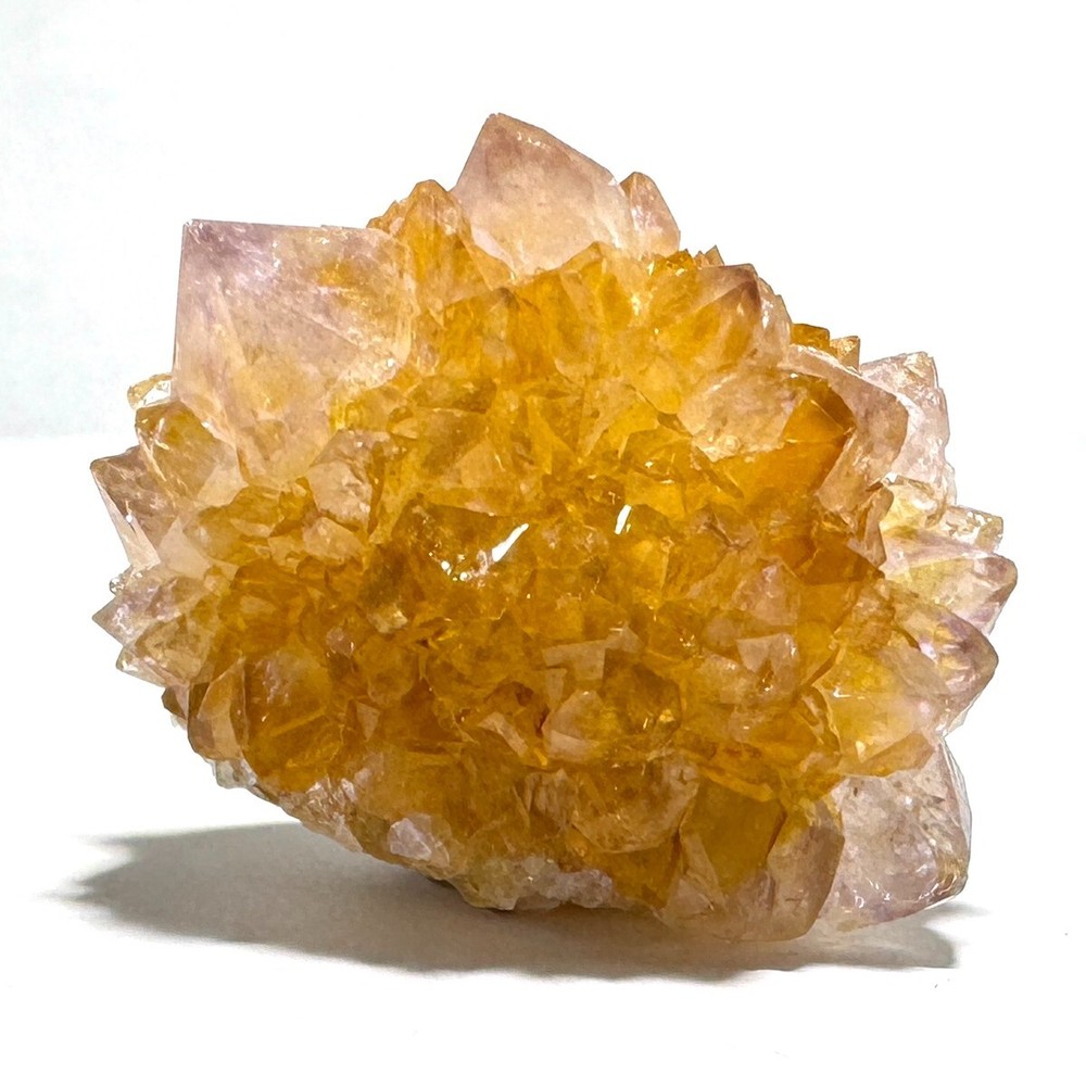 Cactus Quartz or Spirit Quartz Size Approximately 3 cm x 3.5 cm x 3 cm 22.3 g View My Other Items For Sale Visit My eBay Store Add me to your Favorite Sellers A cactus or spirit quartz is a quartz crystal that is encrusted by a second generation of smaller crystals grown on its prism faces. These crystals were first discovered in 1986 in the Magaliesberg Mountain Range near Pretoria, South Africa. It occurs as quartz, citrine and amethyst, and comes in a wide range of colors, including purple amethyst, violet amethyst, smoky, milky clear and golden citrine. FAQ/Tips Crystals are priced by quality, color and size. Purple amethyst is more highly prized and will cost more for a smaller lesser quality crystal. Lavender is the most common color and where you will find the best quality/value for price Crystals change colors with changes in type angle and intensity of light. Color may also vary between monitors. Pictures were taken in bright natural light. We do our best to give you many views so you can judge the quality of the given crystals. If you have questions please ask before bidding or buying. Many of the crystals have special color properties: Many have phantoms, not just the ones we?ve indicated. Some have ?floating? purple tips. The placement of darker purple against purple or white crystals appears to change as the crystal is turned. Many are a mixture of citrine and amethyst. The ones called ?Golden Healers? or ?Sunshine? have a rainbow effect on crystal faces. We value your feedback please contact us with problems. Items are returnable. Track Page Views With Auctiva's FREE Counter