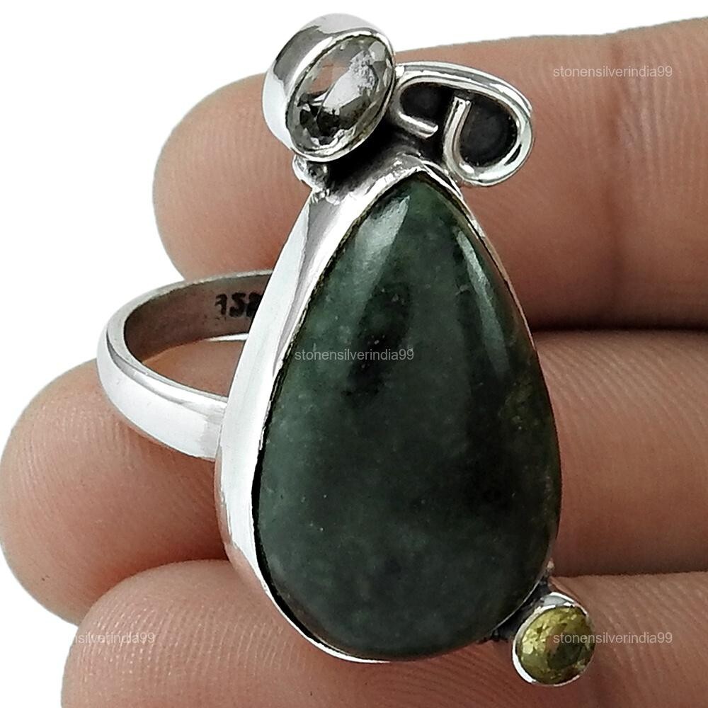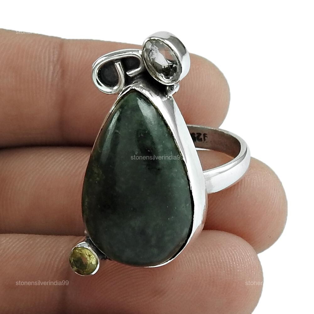 Trendy and appealing, this 925 Sterling Silver Ring from Stone N Silver India studded with Jasper is a must-have in your accessory collection. This designer Ring is featuring an eye-catching finish, which is worth investing in. ------------------------------------------ Welcome to Our Shop Stonensilverindia99 ------------------------------------------ Natural Jasper Gemstone 925 Sterling Silver Cocktail Ring Size 8 For Women Description :- This sterling silver ring features a natural green Jasper stone in a pear shape, surrounded by Citrine secondary stones in a bezel setting. The ring is a size 8 and is adorned with a total of as seen in picture gemstones. Handmade in India, the cocktail ring is signed and comes with a seller warranty. The design is vintage-inspired with an antique look, making it a perfect choice for special occasions like engagements, weddings, anniversaries, or birthdays. Personalization is available for this unique and eye-catching statement piece. SKU:- RNCC1003-2 Metal:- Sterling Silver Metal Purity:- 925 Gemstone:- Jasper Gemstone Color:- Green Gemstone Shape :- Pear Gemstone Creation :- Natural Stone Setting :- Bezel Ring Size:- 8 US --------------------------------Image Policy----------------------------- All our photos are captured in natural lighting to accurately represent our products. Every product depicted in our images is authentic and corresponds to the items being sold. --------------------------------Shipping Policy-------------------------- We offer worldwide shipping via Registered and Express mail, complete with tracking numbers for your convenience. Delivery typically takes 10 to 14 business days, varying by destination. Buyers are responsible for any additional payments such as duties and taxes. Shipments may experience delays of up to 25 to 30 days due to customs procedures and cross-border transit. Handling Time: 2 Business Days --------------------------------Product Policy--------------------------- Rest assured, the product you receive will match the exact item showcased in our images. All our products are meticulously handcrafted with care and attention to detail. --------------------------------Return Policy--------------------------- We specialize in handmade jewelry and prioritize your satisfaction. Should you have any concerns with your product, please reach out to us, and we'll work diligently to address them. Please note: We accept returns only in the case of manufacturing defects. Return shipping charges will be the buyer's responsibility if the return request is based on reasons such as personal preference or change of mind. We are unable to accept returns for damaged items or missing stones. In such cases, return shipping charges will be borne by the buyer. ---------------------------------Payments Policy------------------------------ Your satisfaction is paramount to us. Should you encounter any issues or have questions, please don't hesitate to contact us. We're committed to ensuring your satisfaction with every purchase. ---------------------------------Order Policy------------------------------ We gladly accept orders from customers worldwide, including custom and bulk orders. If you have any inquiries about our products, feel free to reach out to us. Upon receiving your order, we kindly request that you consider leaving us a review. ---------------------------------Feedback Policy------------------------------ We value our customers immensely and provide immediate positive feedback upon receiving payment. If you encounter any issues, please contact us before leaving any negative or neutral feedback. We are dedicated to resolving any concerns and ensuring your satisfaction. ⋆⋆✦✧✦⋆⋆⋆⋆✦✧✦⋆⋆⋆⋆✦✧✦⋆⋆⋆⋆✦✧✦⋆⋆⋆⋆✦✧✦⋆⋆⋆⋆✦✧✦⋆⋆⋆⋆✦✧✦⋆⋆⋆⋆✦✧✦⋆⋆ "Explore a realm of exquisite and enchanting handcrafted gemstone jewelry at our boutique." https://www.ebay.com/str/stonensilverindia ♥ Thank you for visiting us ♥