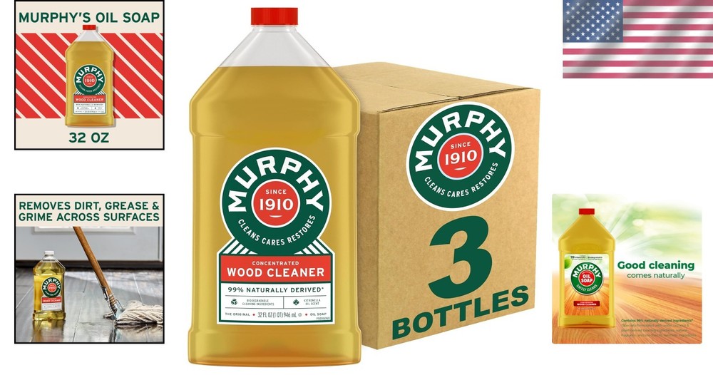 Global Trade Identification Number:10070481465305Number Of Items:3Item Form:Liquidgtin13:Does not applyItem Length:Wood CleanerSurface Recommendation:WoodItem Volume:0.23 Cubic FeetMaterial Feature:BiodegradableUnit Count:96.0 Fluid OuncesBrand:UnbrandedType:CleanerCapacity:32 fl oz (pack of 3)Size:32 Fl Oz (pack Of 3)Item Type Name:Murphy Concentrated Wood CleanerItem Height:Wood CleanerMaterial Features:BiodegradableItem Width:Wood CleanerPersonalize:NoItem Weight:32 ouncesMaterial Type Free:Ammonia FreeSpecific Uses For Product:FloorVolume:0.23 cubic feetFor:WoodNumber in Pack:3Special Features:Concentrated, No Rinse, Residue FreeScent:Citronella oil scentForm:LiquidContains Liquid Contents?:YesUPC:Does not applyFeatures:Biodegradable, Safely cleans woods, Specially formulated with water, Natural fragrance, 2% synthetic ingredients, Does not contain ammonia, Does not contain bleach, Concentrated, No rinse, Residue free, Trusted for over 100, Phosphate free