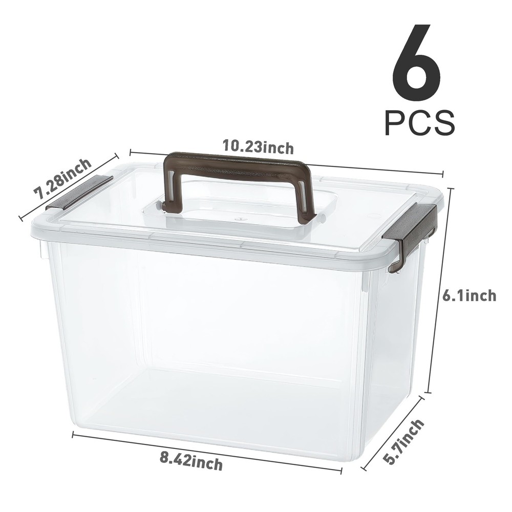 Citylife 6 Packs 6 QT Plastic Storage Bins with Latching Lids Clear Storage Box with Handle Stackable Storage Containers for Organizing Snacks, Crafts, Tools Ideal Solutions for Home Storage: With the help of the Citylife 6-Quart Storage Box, you can organize a variety of spaces in your home and keep things tidy. Ideal for organizing snacks, holiday decorations, art supplies, crafting materials, scrapbooking supplies, tools, and more Portable and Stackable: Handles provide easy transport when re-organizing or getting out the next season's decorations. Stackable design helps you take advantage of every inch of storage space. Containers nest when not in use Clear and Secure Latch: A see-through base and lid allow contents to be easily identified so that you can sort through your boxes and find what you are looking for. Latching lids keep out dust, and dirt to ensure items are safe and secure while being stored. Durable Construction: Made of premium durable PP5 plastic so you don't have to worry about chipping. We also conduct relevant tests to ensure the quality of each box 6 Packs 6-quart Containers: Spacious storage bin exterior dimensions measuring 10.31"L x 8.42" W x 6.1"H with interior measures 9.1"L x 6.42" W x 5.91" H. Single capacity 6 quarts. Perfect for organizing your pantry, closet, bedroom, garage, office, and more