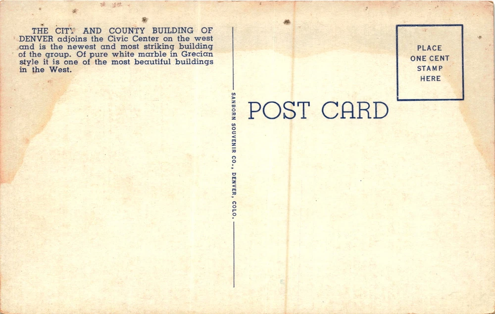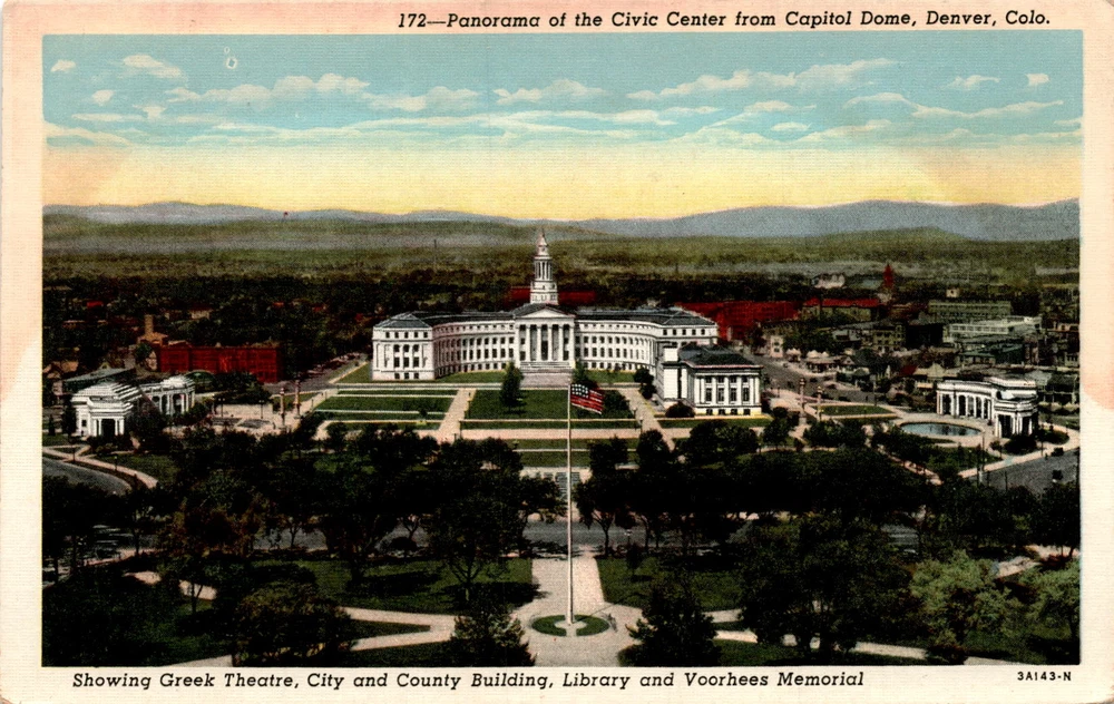 MAKE AN OFFER. THE MORE YOU BUY THE BETTER DEAL I WILL ACCEPT The postcard depicts a panorama of the Civic Center from the Capitol Dome in Denver, Colorado. The view shows the Greek Theatre, City and County Building, Library, and Voorhees Memorial.