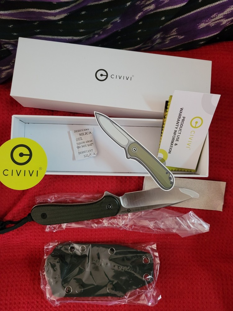 The Civivi Fixed Blade Elementum Knife in dark green with a Micarta handle and a D2 blade is a versatile and durable knife suitable for hunting, everyday carry, and survival situations. The satin D2 blade offers a sleek and sharp edge, while the Micarta handle provides a comfortable and secure grip for various tasks. Ideal for collectors or outdoor enthusiasts looking for a reliable fixed blade knife from a trusted brand like Civivi. Another 1 in rotation. Thank you for looking folks Shawn