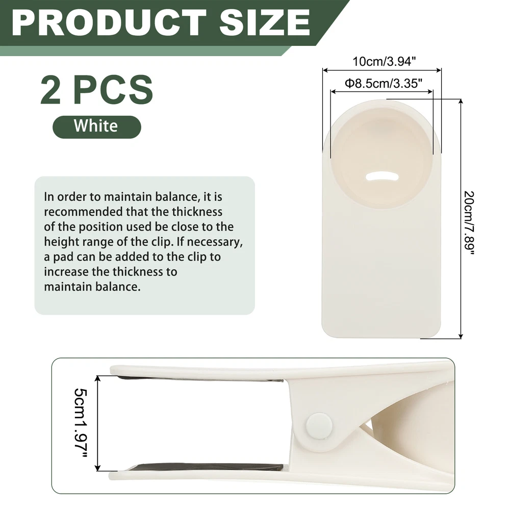 Clamp on Table Bottle Clip Couch Holder for Desk Chairs Mug, White, 2 Pcs