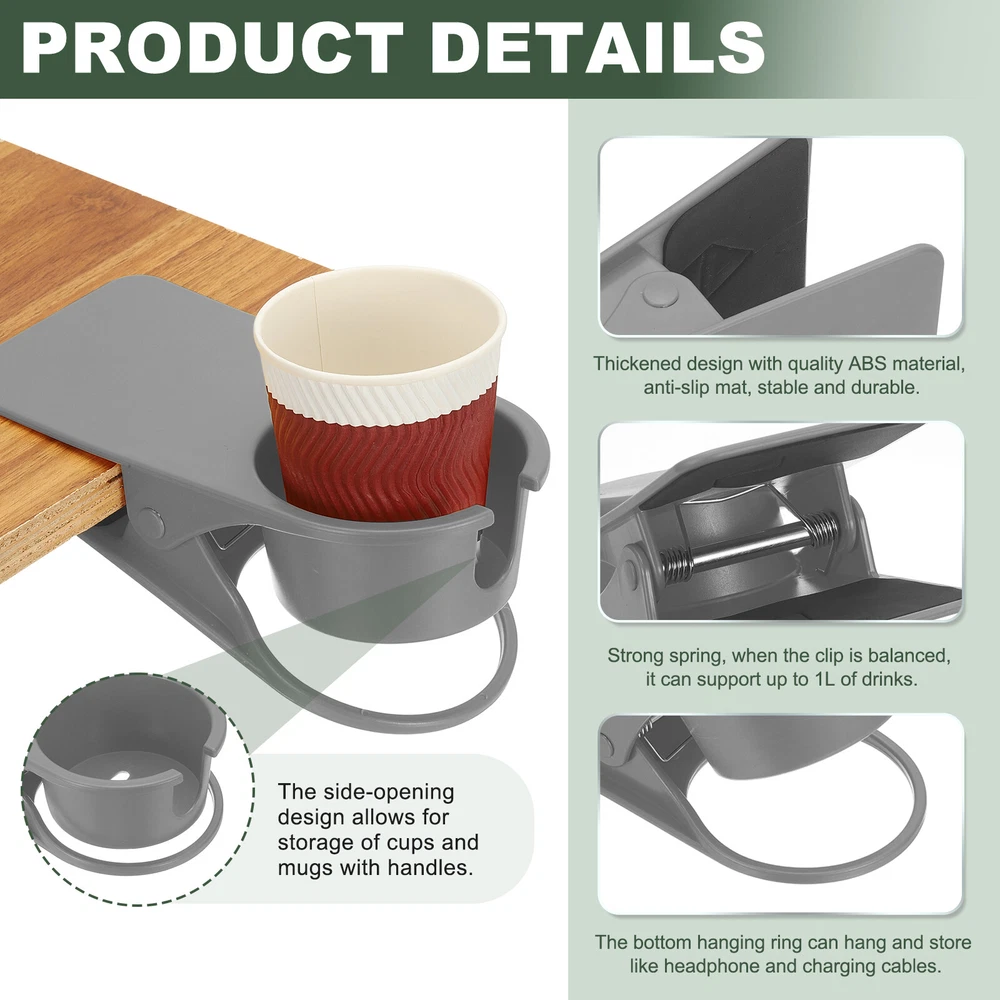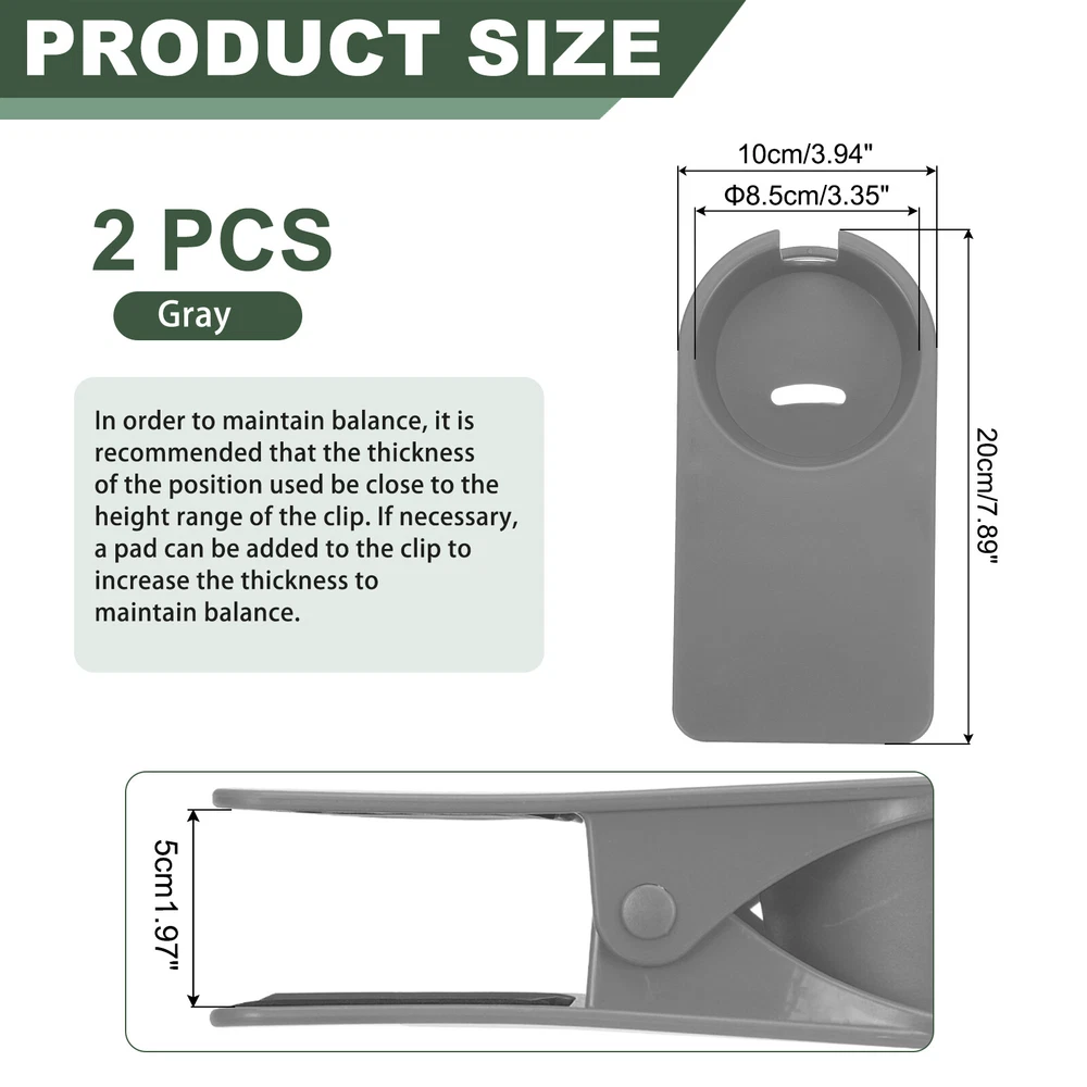 Clamp on Table Bottle Clip Holder with Side Open for Desk Chairs, Gray, 2 Pcs