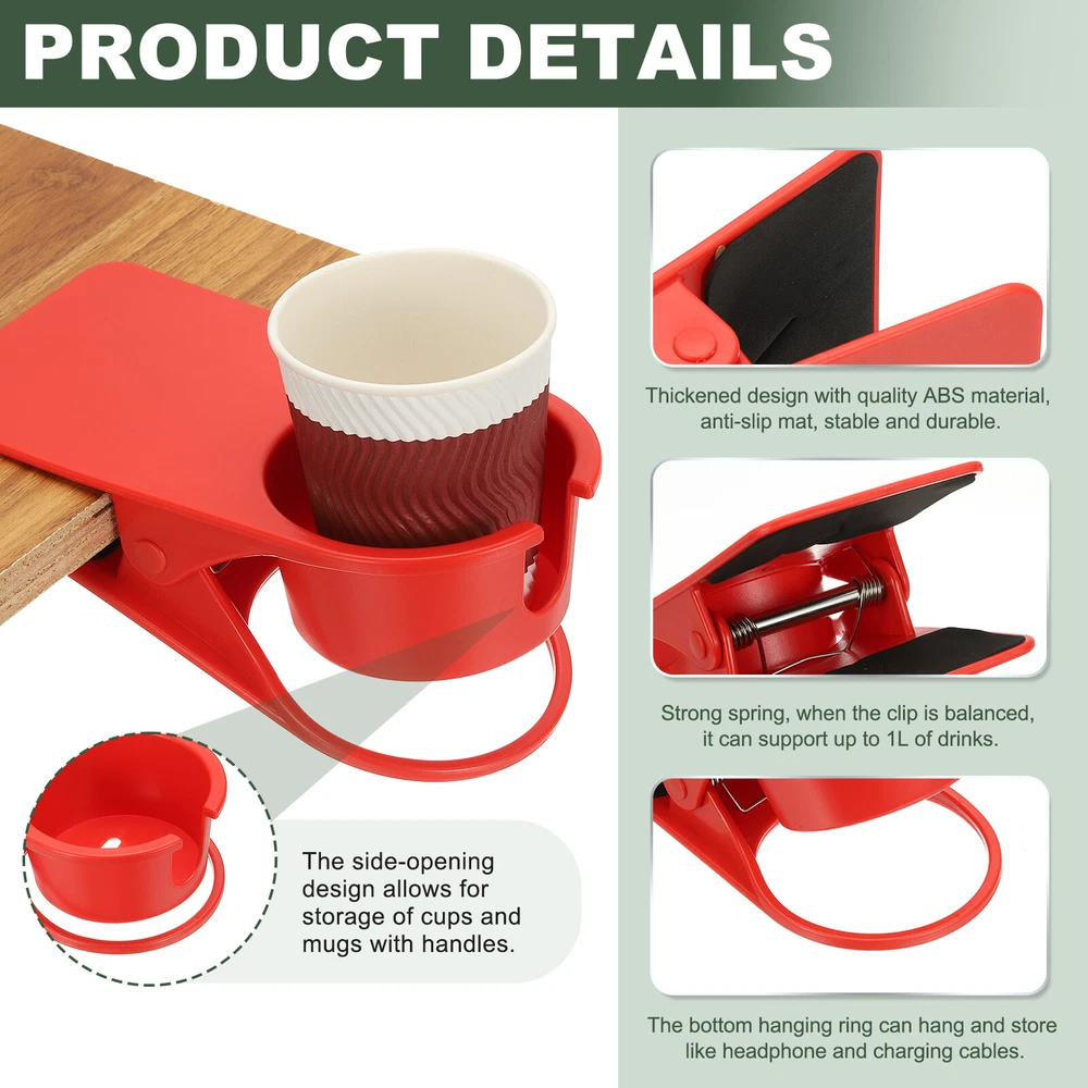 Clamp on Table Bottle Clip Holder with Side Open for Desk Chairs, Red, 2 Pcs
