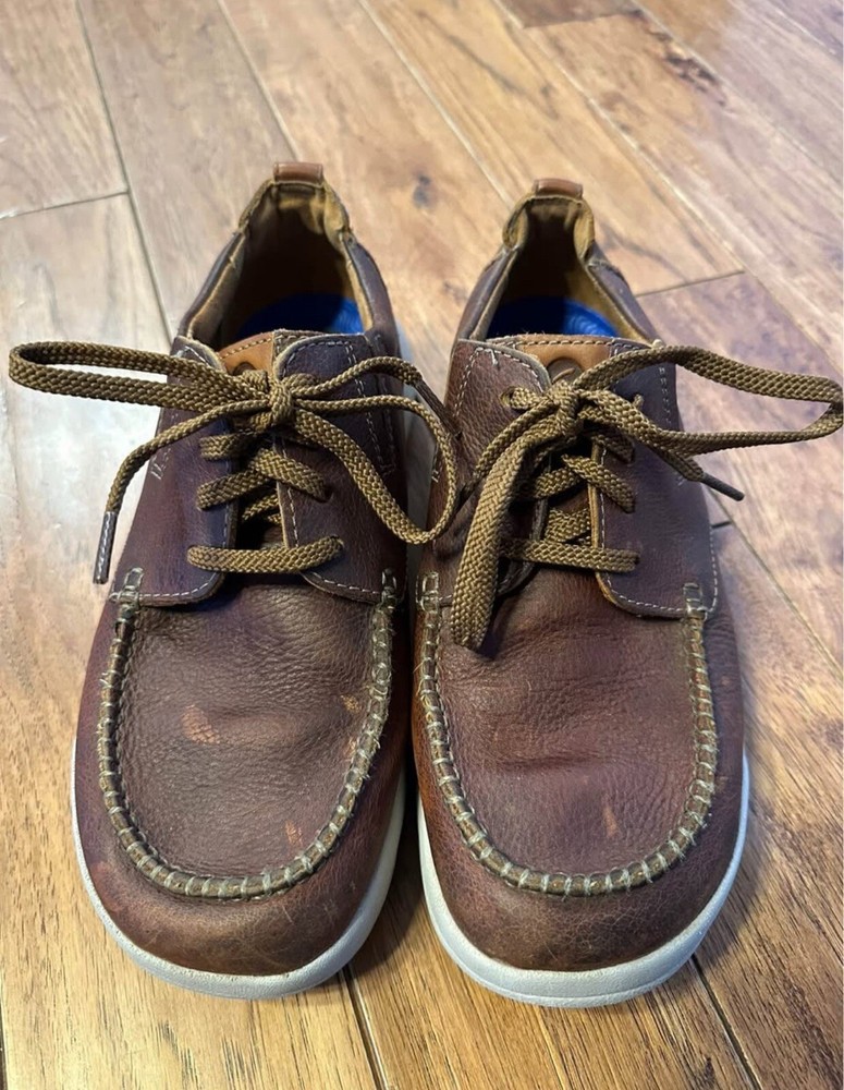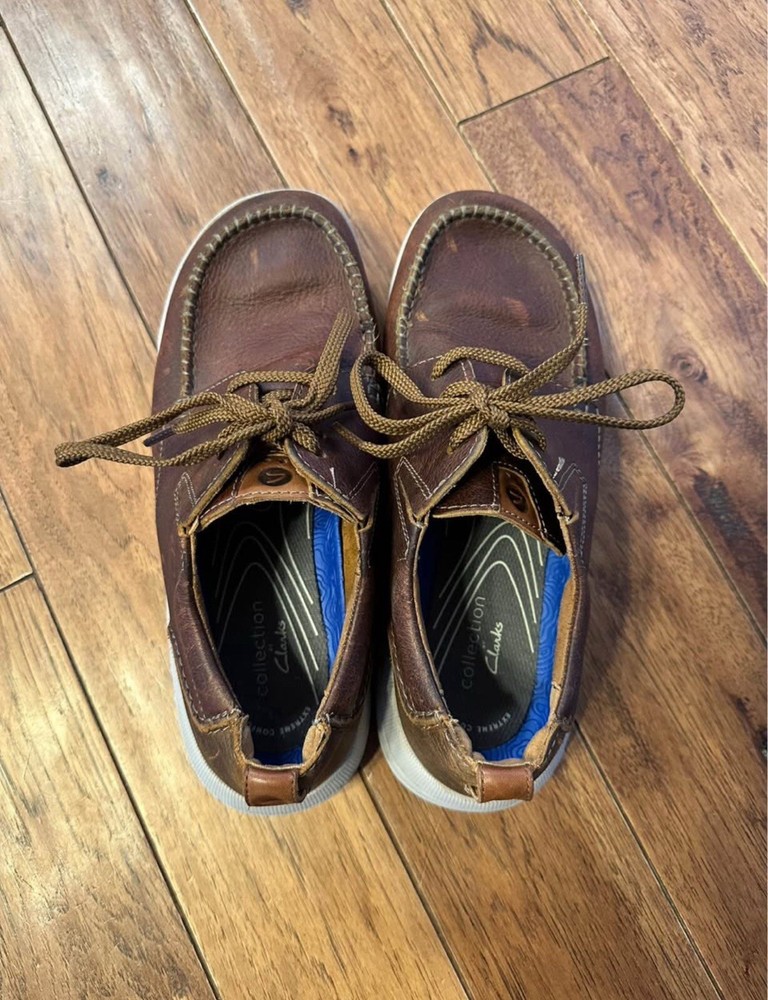 Clarks Men's Driftway Low Boat Shoe Size 8.5W . Good used condition. Product Details: Channeling a heritage Clarks aesthetic and stacked with comfort features, Driftway Low helps you move naturally and stylishly. An innovative nature-formed last, this lace-up shoe's shape follows the natural placement of toes, allowing feet to relax and sit perfectly inside for all-day comfort. - Removable foot bed - Arch support - Heel support - The responsibly sourced leather uppers feature crafted moccasin detailing for authentic, versatile, and conscious style - Extreme comfort breathable ortholite foot beds, added heel foam, and lightweight ethylene vinyl acetate soles combine to cushion every step and make movement effortless - Leather Upper, Textile Liner, and Manmade Outsole