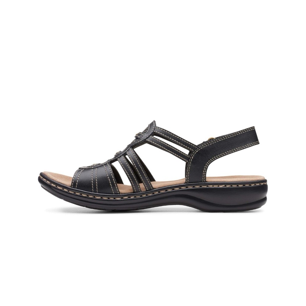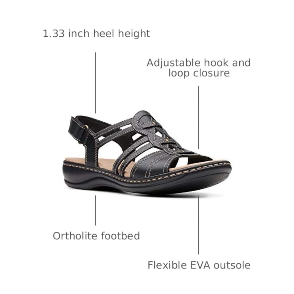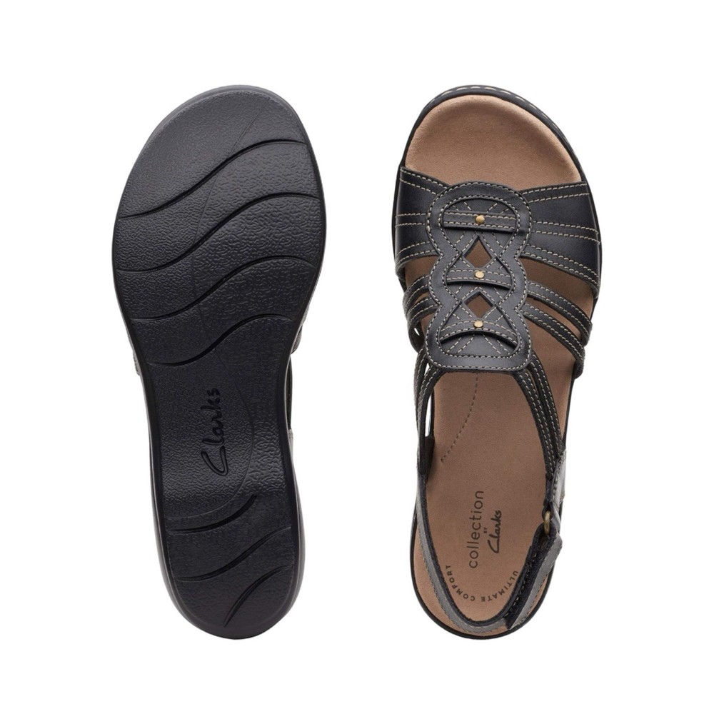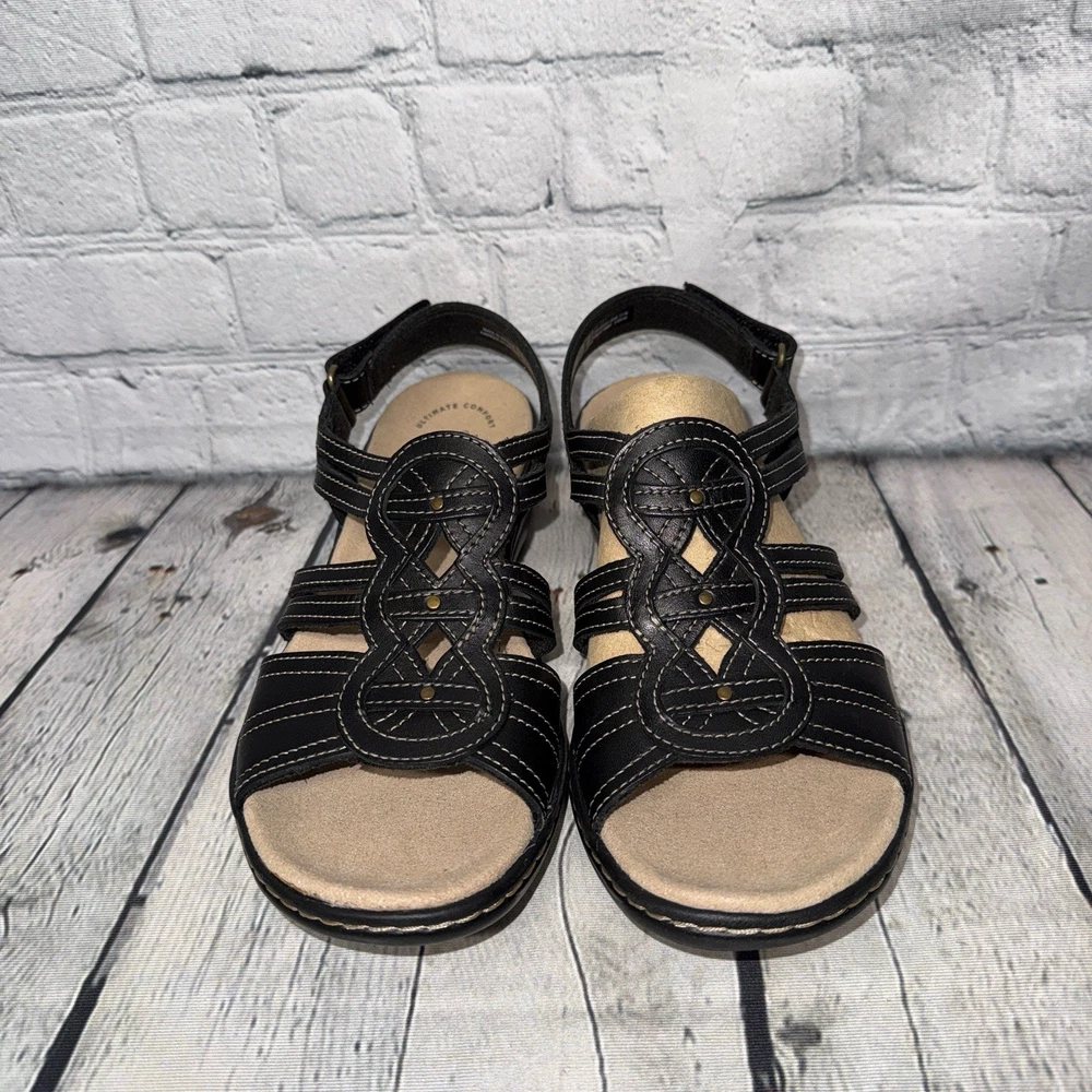 NWT! Collection by Clark’s size 7 Leisa Janna sandals in black. Genuine leather upper. Open round toe. Cushioned insole & lightweight flexible rubber outsole. Adjustable velcro ankle strap. 1.5” wedge heel. Price tag: $105.00
