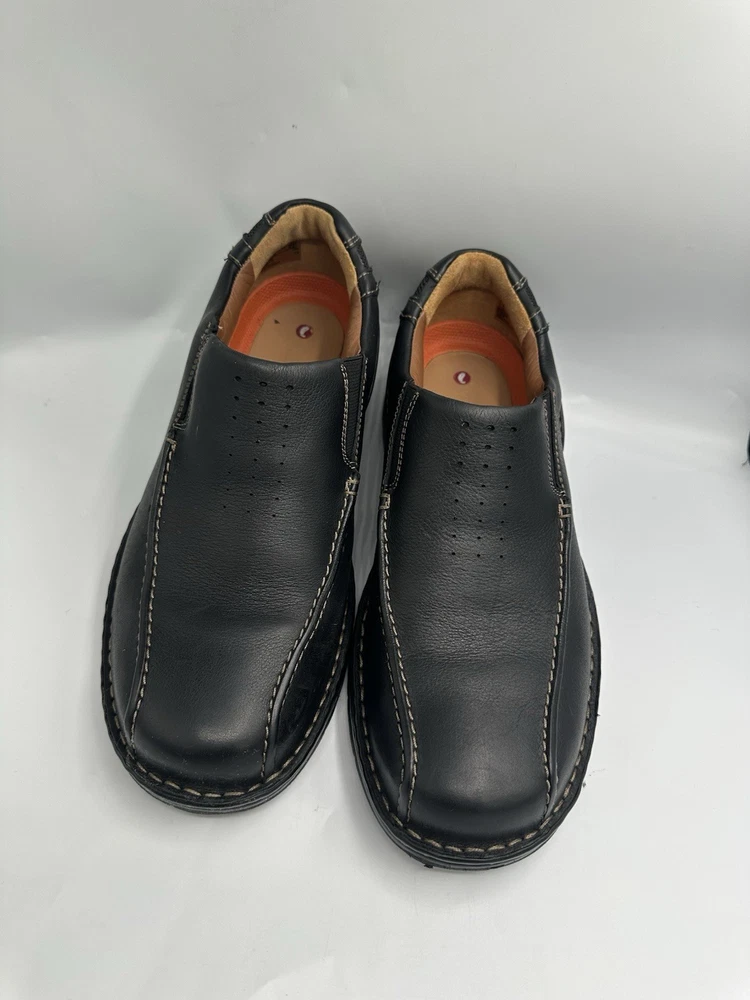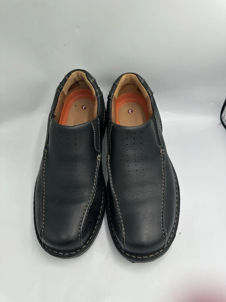 Clarks Unstructured Mens Black Leather Slip-On Comfort Shoes Size 9M