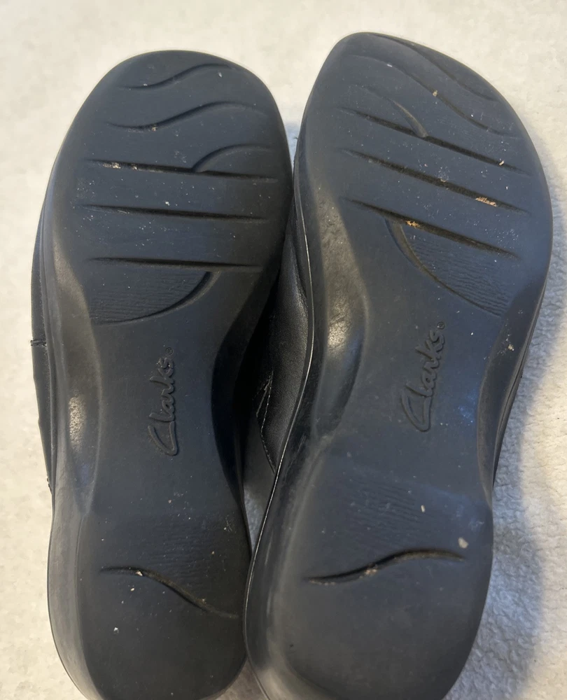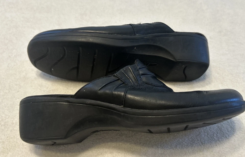 Clarks Women’s Shoes Size 7.5 M Black Mules Leather Slip On Clogs Wedge