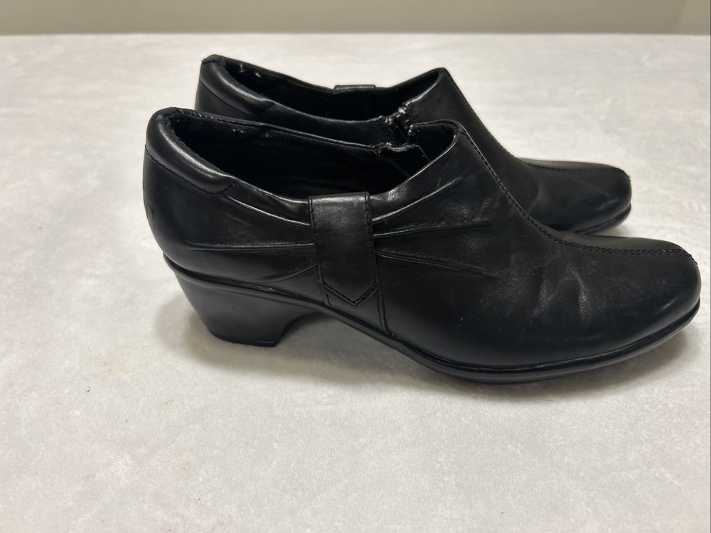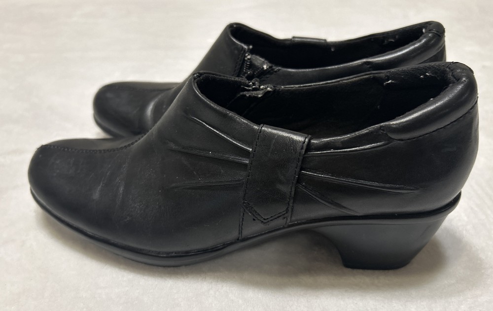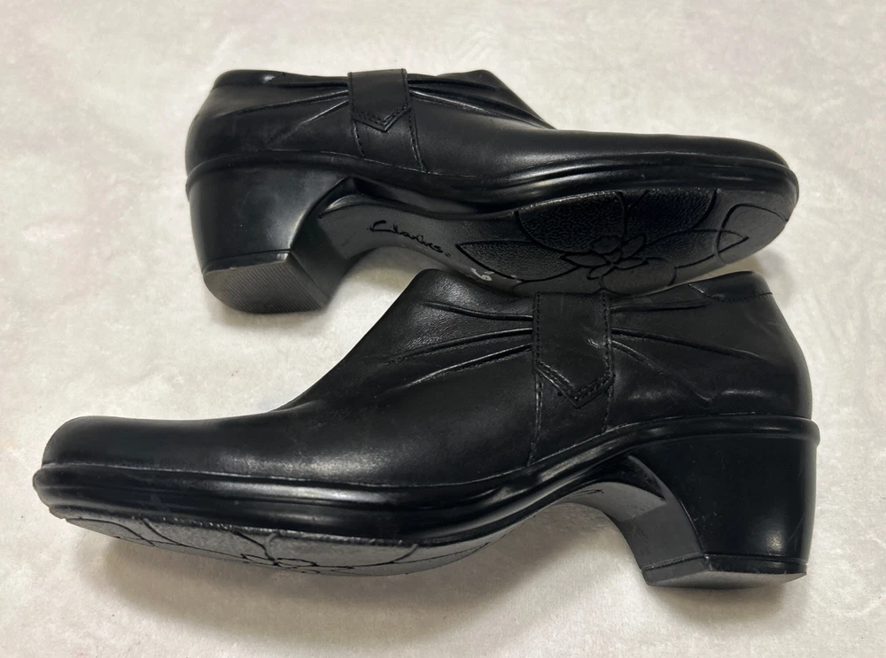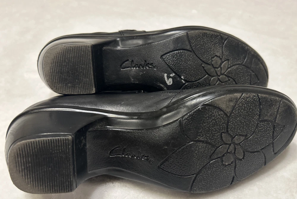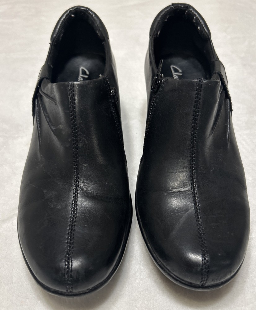 Clarks Women’s Shoes Size 7 M Black Heels Side Zip Pump Heels Leather Bendables