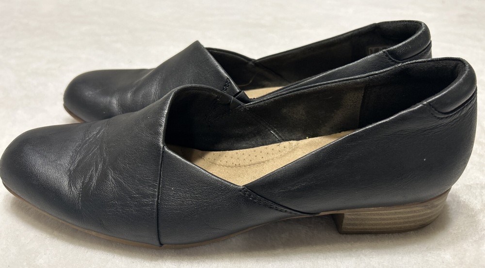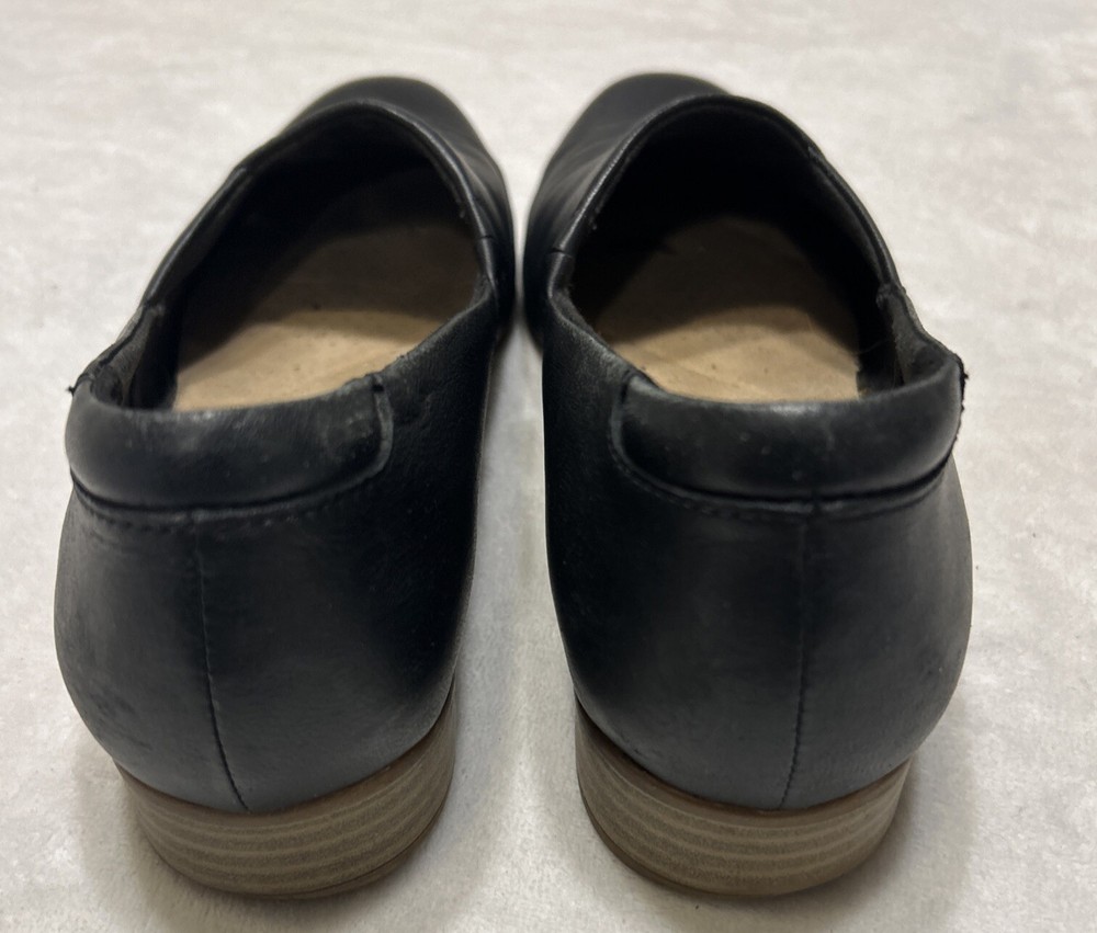 Clarks Women’s Shoes Size 9.5 M Black Slip On Leather Wedge Heel Comfort Foam