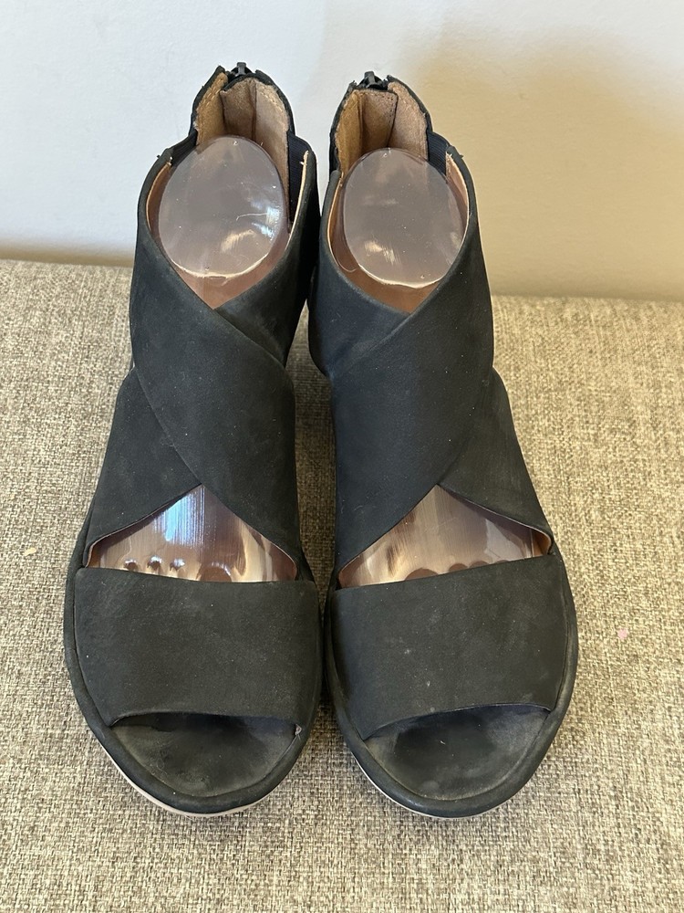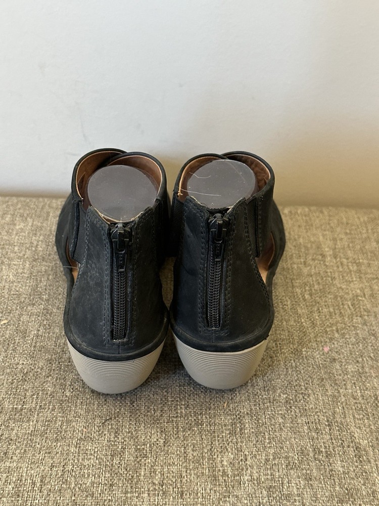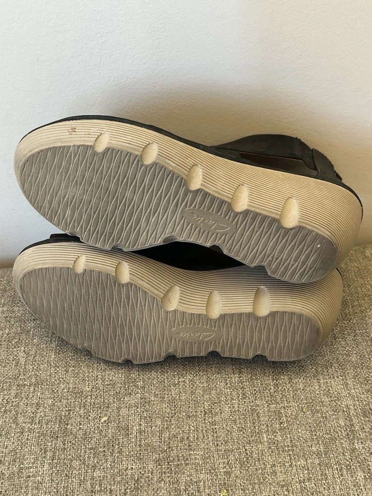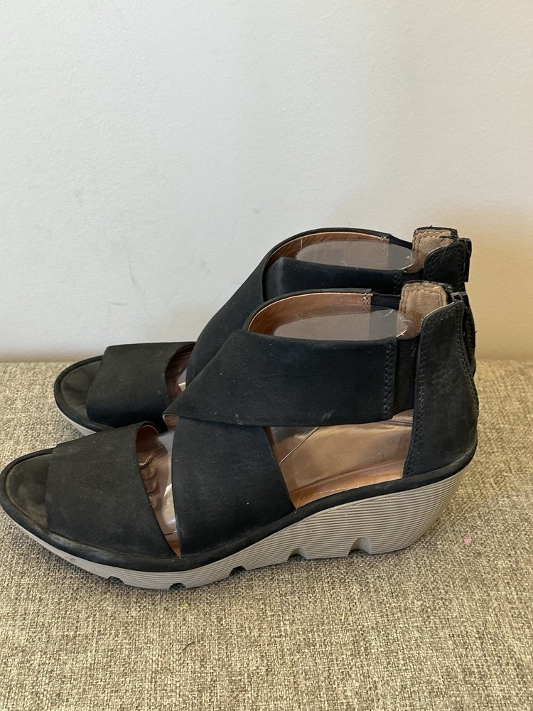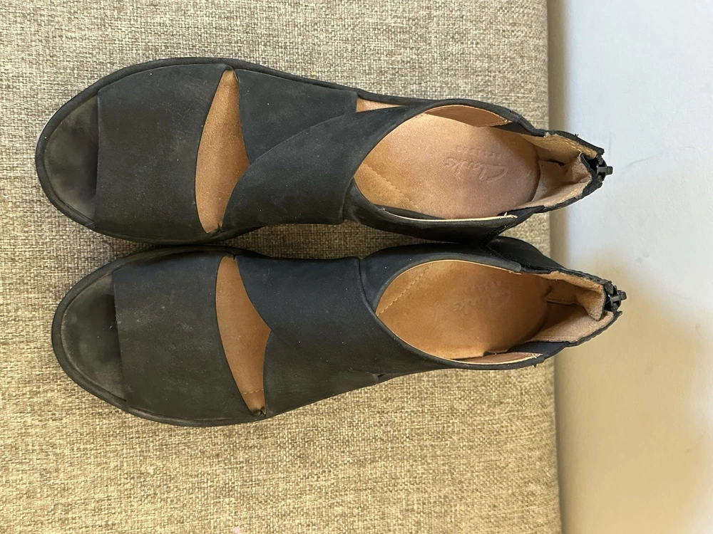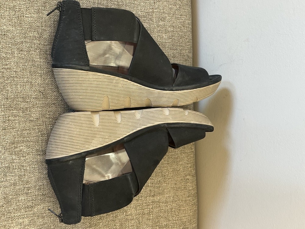 Clark’s Women’s Black Leather Wedge Zip Back Sandal Size 10