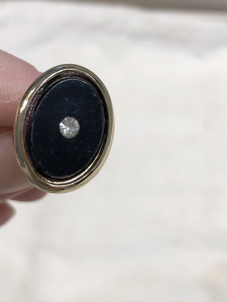 These preowned cuff links are classic ovals w/sparkling chips of either CZ’s or diamonds. The tie tack can be used as a lapel pin.