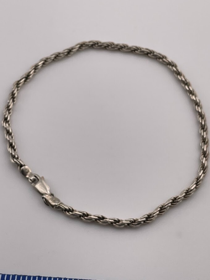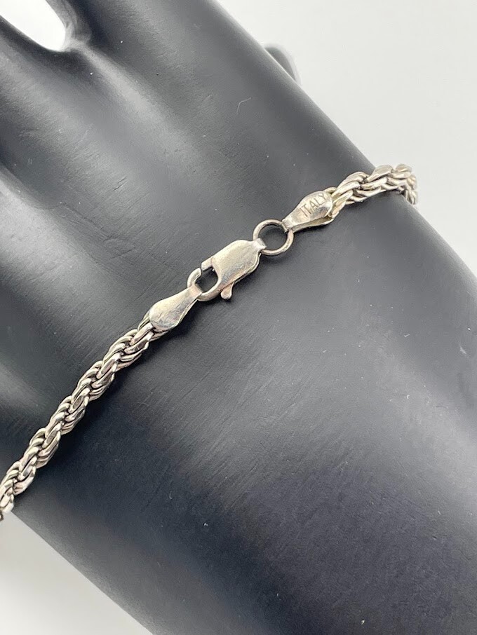 ITALY 925 STERLING SILVER 3MM ROPE CHAIN ANKLET BRACELET 9.25" CLASSIC BOHO 923 7.8G SURFER ****************************** Thank you for your interest in our jewelry. We?d like to introduce ourselves. We are just a retired couple who love matching our customers with great jewelry. We?re not professional jewelers. To have the best shopping experience we like to recommend the following: Please measure your hand, wrist, finger or neck to ensure the best fit. We can use your measurements to help with sizing. Please ask all the questions you want. We know some stuff and, if we don?t, we?ll do the research. We like to learn too. More Stuff: If an item is described as ?gold over 925 sterling silver? this means it is gold vermeil. Vermeil is the process by which a layer of gold (usually 14k or 18k) is bonded to sterling silver. We only clean with gentle soap and warm water to avoid damage. The items we sell may be new or pre-owned and may have normal wear, slight damage, and/or tarnish. We make every effort to ensure the items we sell are as described. This includes testing to confirm metal purity if the item isn?t marked, and testing for gemstone identity. We try to put measurements in the jewelry description and include a photo of each piece with a U.S. quarter (25mm).