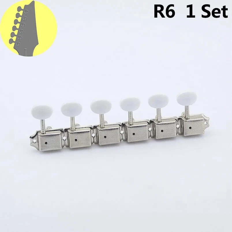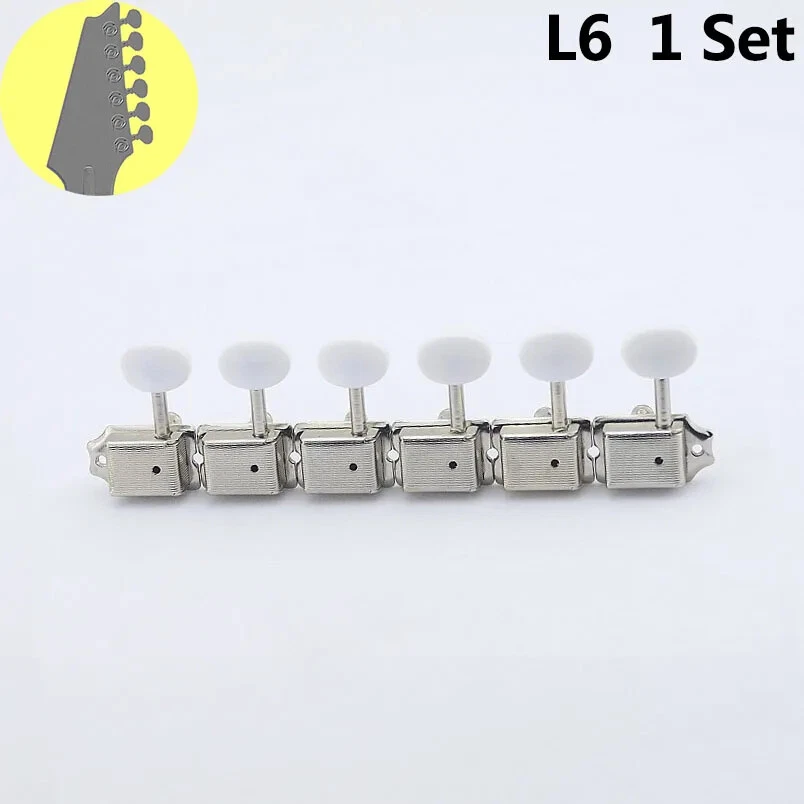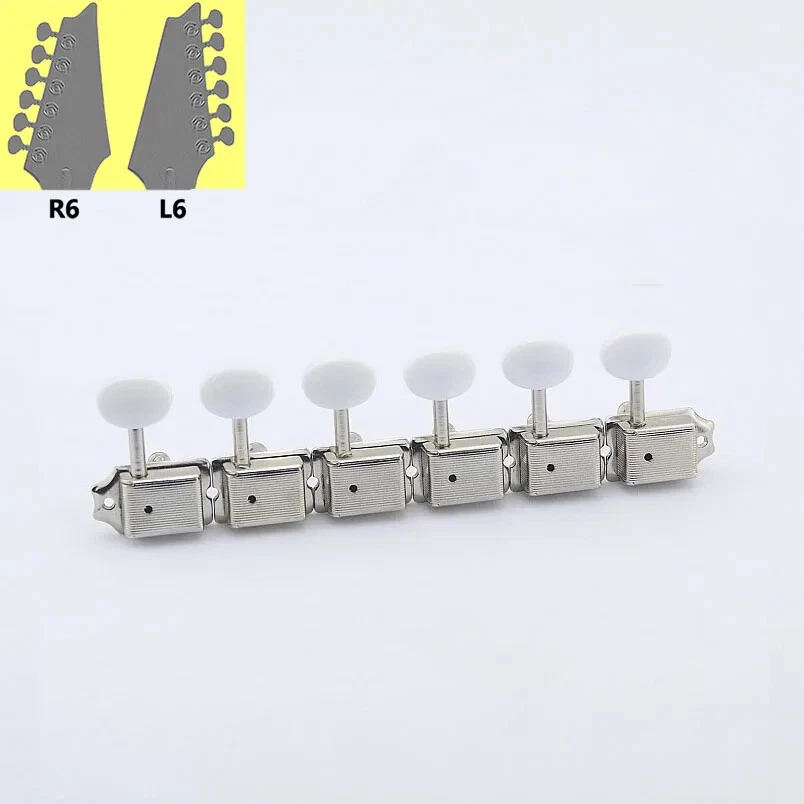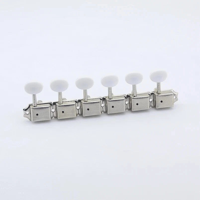 PRODUCT INTRODUCTION : ITEM: Vintage Guitar Machineheads Tuners STIPULATIONS: Gear ratio - 1:15 ; Refer to the data in the picture COLOR: Nickel as shown in the picture WEIGHT: 150G/Set