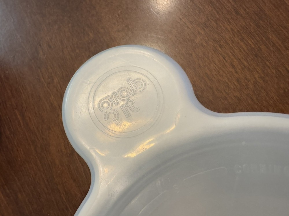 Great shape This vintage Corning Ware French White Grab-It Bowl is perfect for all occasions! Made of glossy stoneware, this 15 oz bowl is oven, microwave, and dishwasher safe. The round bowl features a contemporary style and includes a handle for easy carrying. The 7 1/4" bowl, including the handle, has a 5 1/2" diameter and 2" depth. It is an original bowl... This soup bowl is great for serving personal casseroles or soups. Care instructions are also included, and this bowl is machine washable. Please see all photos Smoke Free Home Always happy to combine for shipping savings