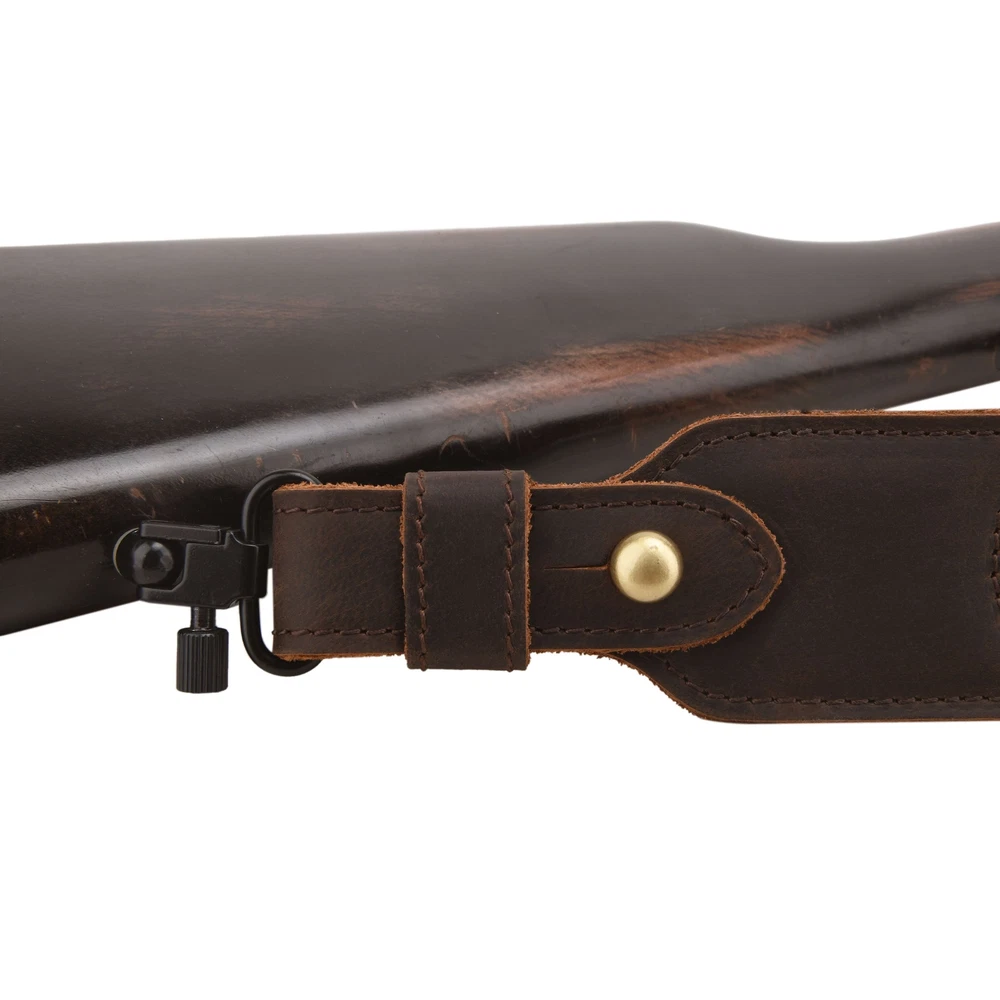 【Material】Made of buffalo hide leather with quality stitching, double-layered cotton webbing, non-slip gun strap. 【Adjustable Vintage Gun Strap】Can be adjustable from 34 1/2" to 46 1/2". 【Fit 1" Swivels】Both ends of the shoulder strap are 1 inch wide, suitable for most rifle swivels. 【Secure Chicago Screws】Equipped with solid brass Chicago screws with both sides slotted for secure adjusted fit 【Package include】1pcs Vintage Leather r ifle sling.