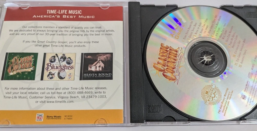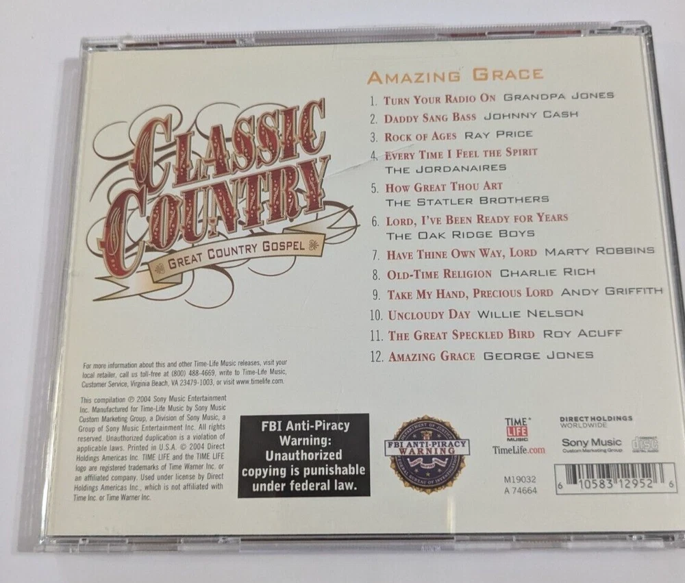 Classic Country Great Country Gospel Amazing Grace CD - Time Life The CD is in excellent condition and scratch free. The plastic case has a crack on the back cover. 32