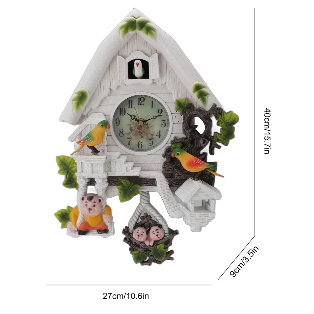 Feature: 1. EUROPEAN STYLE: The cuckoo tree house clock features a classic design, European style, white color decoration, adding to the home ambient. Suitable for hanging in various scenes. 2. CUTE AND UNIQUE: Adopting cuckoo tree wall clock design, cute and unique, attracting children's attention. Exquisite craftsmanship, excellent choice for home decoration. 3. SOUND CONTROL CHILDREN'S CLOCK: Sound control children's clock, suitable for placing in the living room or children's room. cuckoo birdhouse clock adopts silent , which ensures a quiet sleeping or working environment. 4. ACCURATE TIME, WHOLE TIME CHIMING: Cuckoo wall clock is accurate time with whole time chiming function, convenient for life. You will never miss an important moment again. 5. PREMIUM MATERIAL: The stylish modern wall clocks are made of premium plastic and ABS material, thick and , scratch resistance and long service life. Specification: Item Type: Cuckoo Clock Material: Plastic, ABS Weight: Approx. 994g/35.1oz Size: Approx. 27x9x40cm / 10.6x3.5x15.7in Color: White Battery: 5x1.5V AA Battery (Shipped Without Battery) Package List: 1 x Cuckoo Clock (Battery Not Included) 3 x Decorative Accessories Note: Manual measurement please allow some error.