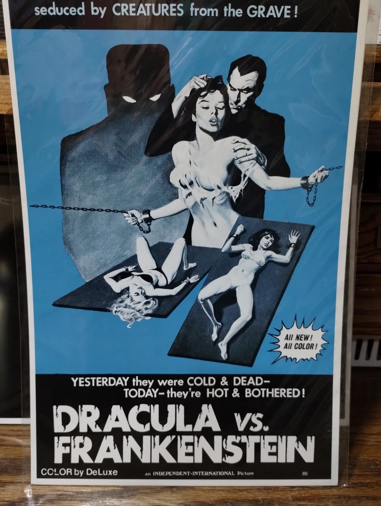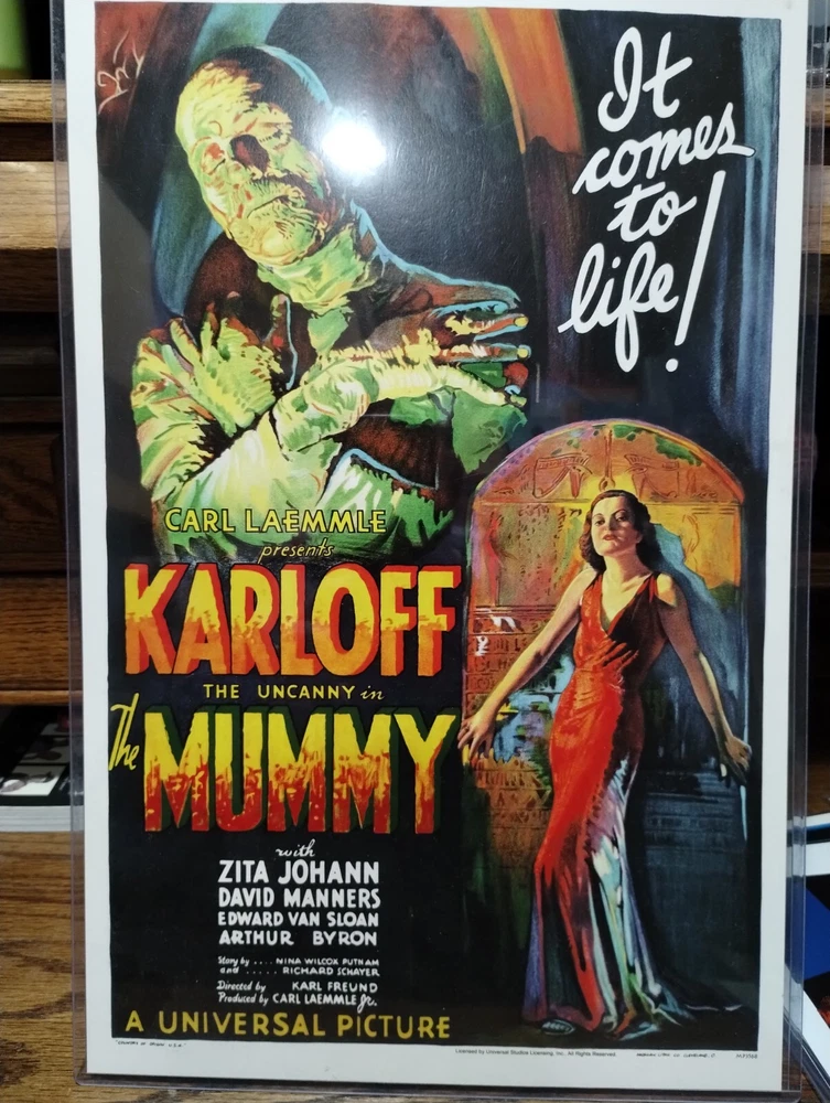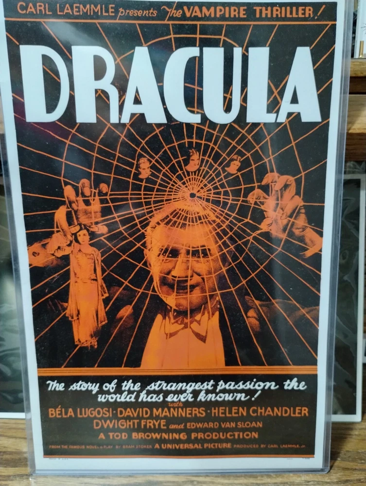 This auction is for a lot of seven classic horror movie posters five of them are in hard case sleeves and two is in a thin plastic sleeve although pre-owned these are in great condition for being preowned they are approximately 17 in tall by 11 in wide on six of them and one of them is approximately 17 in wide by 11 in tall. They are as follows the mummy, psycho, the invisible man, the birds, dracula, Dracula versus Frankenstein, in the last one I do not know please look at all pictures this is a really cool collection.I only ship in the US I do not ship to freight forwarders thanks for looking and happy bidding