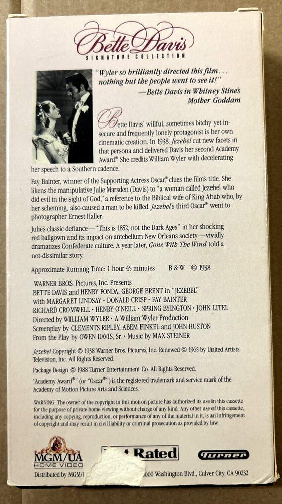 HomeClassic Jezebel: Bette Davis & Henry Fonda MGM UA 1988 Release VHS