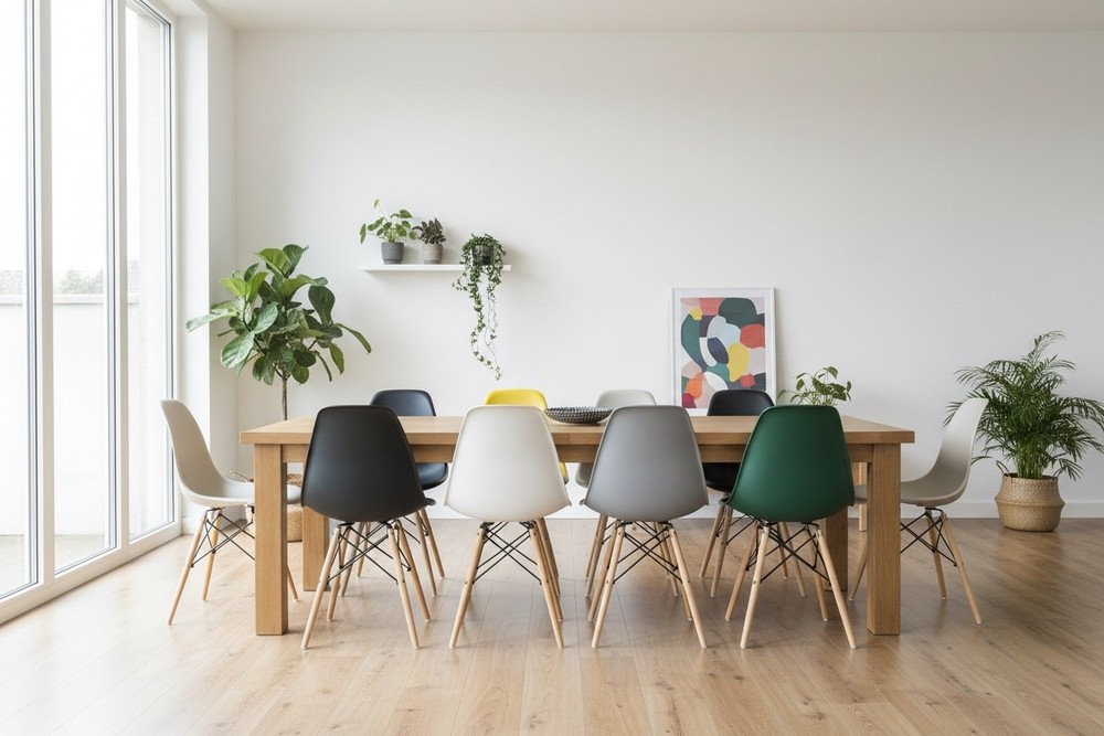 Iconic Mid-Century Design Dining Chair - Beech Legs Upgrade your home or workspace with this timeless dining chair. Stylish, comfortable, and built to last, this chair is perfect for dining rooms, home offices, studios, or contemporary interiors. Key Features: ✔ Classic Mid-Century Design – Iconic style, combining elegance with everyday practicality ✔ High-Quality Construction – Durable moulded polypropylene seat for comfort and easy cleaning ✔ Solid Wooden Eiffel-Style Base – Natural wood legs with reinforced steel struts for stability and style ✔ Ergonomic Comfort – Curved seat supports your posture for extended sitting ✔ Versatile Use – Ideal as a dining chair, desk chair, or accent piece ✔ Quick & Easy Assembly – Comes with all fixings and instructions Product Specifications: Width: Approx. 46cm Depth: Approx. 53cm Height: Approx. 82cm (seat height 45cm) Seat Material: Moulded polypropylene Legs: Solid wood with black cross-bracing Finish: Smooth, matte finish Why Buy from Us? 💨 Fast Dispatch 📦 Secure Packaging ⭐ Trusted Seller 🛠 Easy Returns Bring original mid-century style into your space – a perfect blend of form and function. Order today and enjoy fast delivery!