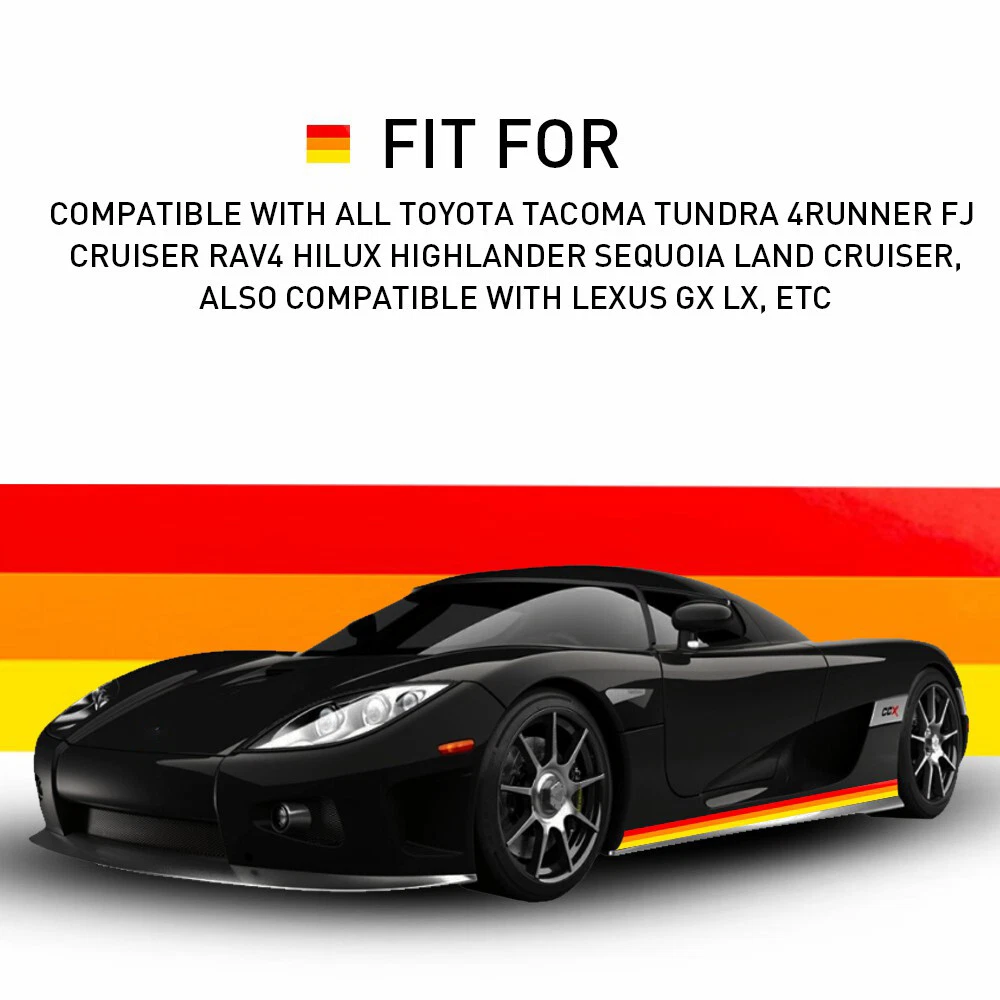 Side Door Fender Skirt Stripes Decal Sticker Fit for: Compatible with all Toyota Tacoma Tundra 4Runner FJ Cruiser RAV4 Hilux Highlander Sequoia Land Cruiser, Also compatible with Lexus GX LX, etc Specifications: Material: vinyl paper Color: Red, orange, yellow Placement on vehicle: Left and right sides Features: *Tri-Color stripe design makes your vehicle stand out and be recognized immediately. *Made with high-quality reflective KK vinyl paper with a glossy coating cover *Good for appearance decoration of your vehicle. *Easy installation with a direct replacement. Classic Retro Style Tri-Color Stripe Decal Sticker skirt For Toyota Lexus New Side Door Fender Skirt Stripes Decal Sticker Fit for: Compatible with all Toyota Tacoma Tundra 4Runner FJ Cruiser RAV4 Hilux Highlander Sequoia Land Cruiser, Also compatible with Lexus GX LX, etc Specifications: Material: vinyl paper Color: Red, orange, yellow Placement on vehicle: Left and right sides Features: *Tri-Color stripe design makes your vehicle stand out and be recognized immediately. *Made with high-quality reflective KK vinyl paper with a glossy coating cover *Good for appearance decoration of your vehicle. *Easy installation with a direct replacement. Packaging include: TRI-COLOR DECAL STICKER*1 Item Specifics Features Easy Installation Self-Adhesive Waterproof Manufacturer Warranty 1 Year Other Part Number Side Skirt Stripe OE/OEM Part Number / Fitment Type Performance/Custom Item Length 71''/180cm Superseded Part Number Stripe Body Outdoor Decal Size 71''/180cm Material Vinyl Attachment Type Self-Adhesive Interchange Part Number Vinyl Graphic Side Skirt Door Car Decal Sticker Stripes Placement on Vehicle Left Rear Right Finish Glossy Gloss Manufacturer Part Number TRI-COLOR DECAL STICKER Brand Unbranded Color 3 Color Type Fender FAQ ♥ If you have a decoding problem or any other problems, please contact us first, we will help you with it. We will reply you within 24 hours in working days. I'm a new seller, thanks a lot for your trust and convince! I will serve you with all my heart. ♥ Q1: Will this bulb fit my vehicle? A: We can match almost any vehicle to one of our bulb sizes. eBay only lets us include some vehicle fitments per listing, but if your vehicle does not show up on the compatibility table at the top of our listings, welcome you to contact us for free consulation before purchasing a product. Q2: My item has not arrived, what's taking so long? A: Sometimes items take longer than expected, especially if it’s going far or to rural area. Check with your post office to see if your item has been held up. Sometimes Royal Mail will not update a tracking number until it has arrived at its destination. If your item still don't arrive after a few days, let us know so we can double check for you and help solve it asap. Q3: My bulbs won't fit, help! A: Special bulb holder may be required. See if you can take the holder from the stock bulb. If not, let us know. The bulb size may be wrong, double check the item you received with the item you ordered. Do you have an aftermarket lighting housing? These may not be perfectly fitted for aftermarket bulbs and will require some manual modifications. Q4: Neither side lighting up? Both sides flicker, hyper flash, or work inconsistantly. A:Check the light fuses, and then check the ballast plugs to insure correct installation. If this doesn't work, there may be a voltage problem with the vehicle. You probably just need a relay or capacitor. Even though some bulbs are builtin resistors, they may still need a decoder. Payment (1). We gladly accepts payment via PayPal, We will ship your item(s) within 24 hours. (2). Before payment, please keep the consistency of Paypal address and ebay address. (3). Quantity orders are welcome! Returns (1). We offer 60 days free return policy. Please contact us within 60 days from the date you receive your order if you have any issues with the product or want return. Refund will be send after we got your resend package. (2). All returned items should be in the original packaging , return tracking information should be provided . Contact us (1).Negative feedback will not help resolve any problems you have, please contact us via eBay messages before leaving negative feedback , our customer service will make best effort to help you with the issues. (2).We maintain high standards of excellenceand strive for 100% customer satisfaction! Feedback is very important to us. We request that you contact us immediately before you give us neutral or negative feedback, so that we can satisfactorily address your concerns. About us We're professional in car and motorcycle accessories, especially in LED bulbs. We have our own factory and R&D team. Our belief is to sell top quality items that fit your car and serve you with our heart. Anything please feel free to contact us! Our customer service is very responsibility. Come and follow us! DESCRIPTION PAYMENT SHIPPING RETURN POLICY CONTACT US Shop Category Store Home Other Hot Item 5/16" Marine Outboard Boat Motor Fuel Gas Hose Line Assembly with Primer Bulb US USD 19.94 BLACK ROOF TOP TRIM MOLDINGS FOR 2006 2007 2008 2009 2010 2011 2012 TOYOTA YARIS USD 17.99 AUXITO 9012 HIR2 LED Headlight Kit Bulb High/Low Beam White 80000LM Super Bright USD 44.99 AUXITO 7440 7443 7444 LED Backup Reverse Back Up Light Bulbs Super Bright White USD 12.59 2PCS O2 Oxygen Sensor Up+Downstream For 08-14 Chevrolet Equinox/GMC Terrain 2.4L USD 29.99 New List Item 60" LED Truck Strip Tailgate Light Bar Fits Pickup Trailer Truck White Amber Red USD 21.99 2X 4inch Round Red Amber LED Truck Trailer Brake Stop Turn Signal Tail Light DRL USD 16.99 NEW FOR NISSAN MURANO 2015-2019 FRONT BUMPER UNPAINTED TOW HOOK COVER S USD 9.99 39mm-42mm 6500K White LED Interior License Plate Trunk Dome Map Light Bulb 2X S USD 11.99 48" LED STRIP TAILGATE BAR LIGHT REVERSE BRAKE SIGNAL FOR CHEVY FORD DODGE TRUCK USD 19.99 Picture Classic Retro Style Tri-Color Stripe Decal Sticke
