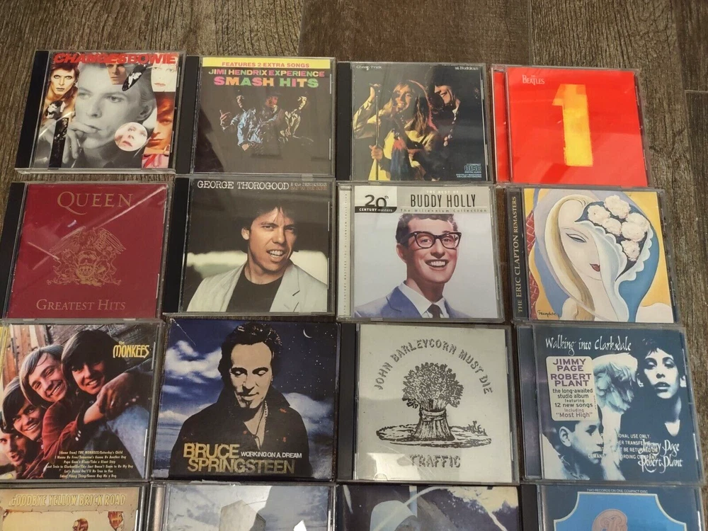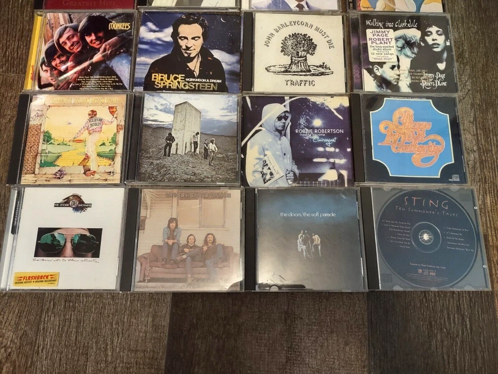Style: Classic Rock Inlay Condition: Good (G) Artist: Bruce Springsteen, Cheap Trick, Chicago, David Bowie, Derek & the Dominos, Doobie Brothers, Eagles, Elton John, George Thorogood, Jimi Hendrix, Queen, Sting, The Doors, The Monkees, Page/Plant, Robbie Roberston, Beatles Genre: Rock Format: CD gtin13: N/A Type: Album Release Title: Assorted Releases UPC: N/A