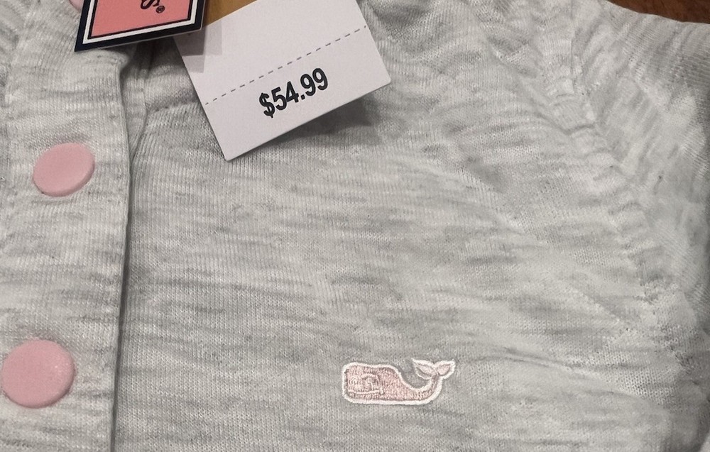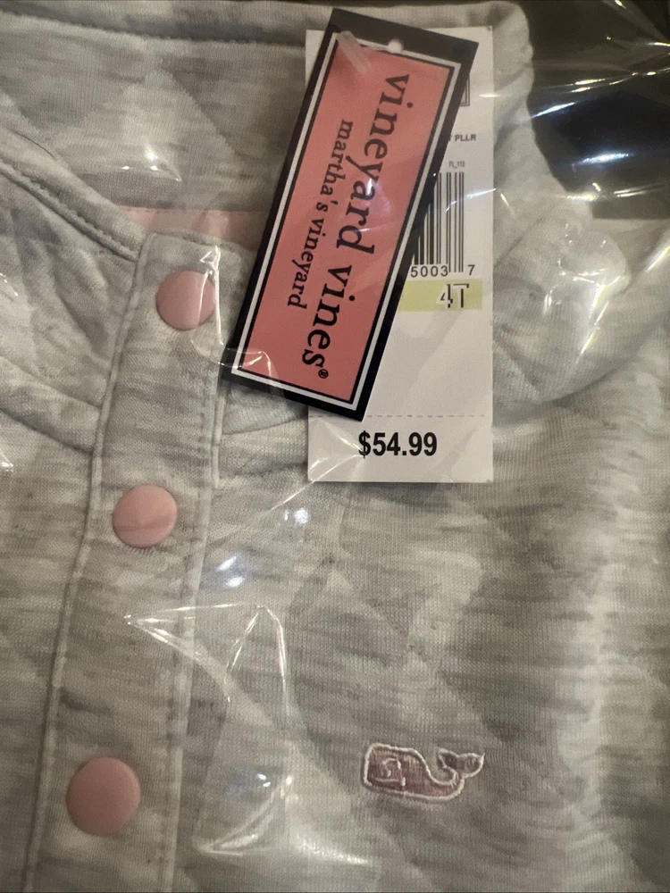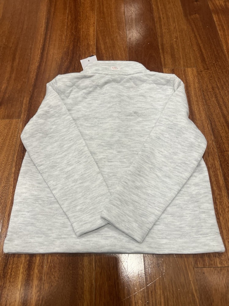 Vineyard Vines Light Grey Heather Diamond Quilted Snap Girls Pullover New Tags This pullover fleece is designed for babies and toddlers and features a snap closure for easy dressing.The pullover style and quilted accents add a touch of sophistication to the overall look, making it a stylish and practical addition to any little one's wardrobe. Made with high-quality materials and brand new with tags, this pullover is sure to be a favorite for both parents and children alike. Item ships free via USPS Ground advantage sealed in a bag for protection