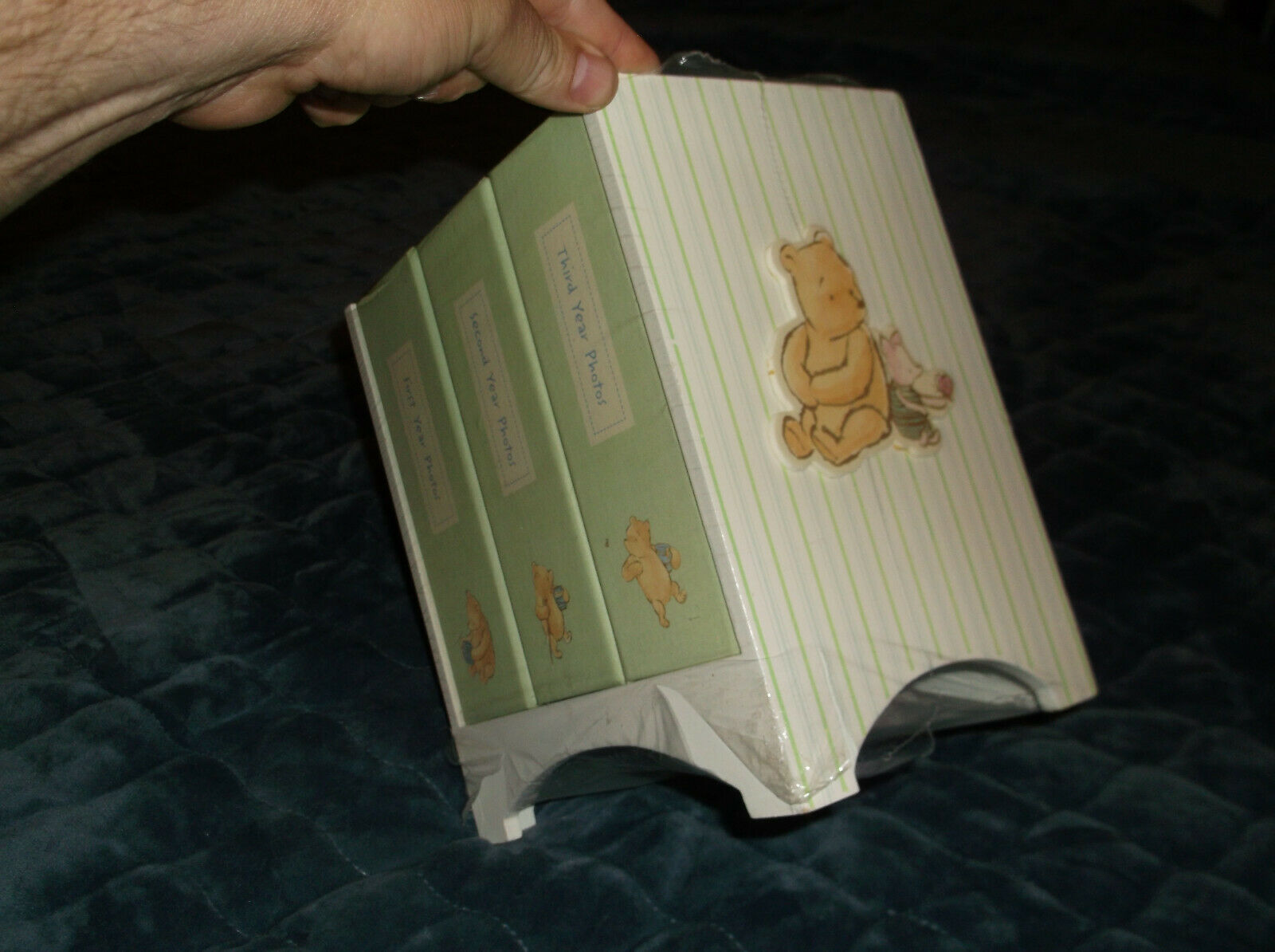 THIS IS FOR A BRAND NEW SEALED CLASSIC POOH PHOTO LIBRARY FOR THE BABY'S 1ST 3 YEARS. THE 3 ALBUM ARE DISPLAYED ON A DECORATED SMALL WOODEN RACK EACH ALBUM HOLDS 100 4X6 INCH PHOTOS AND THEY ARE PVC FREE PAGES INSIDE.