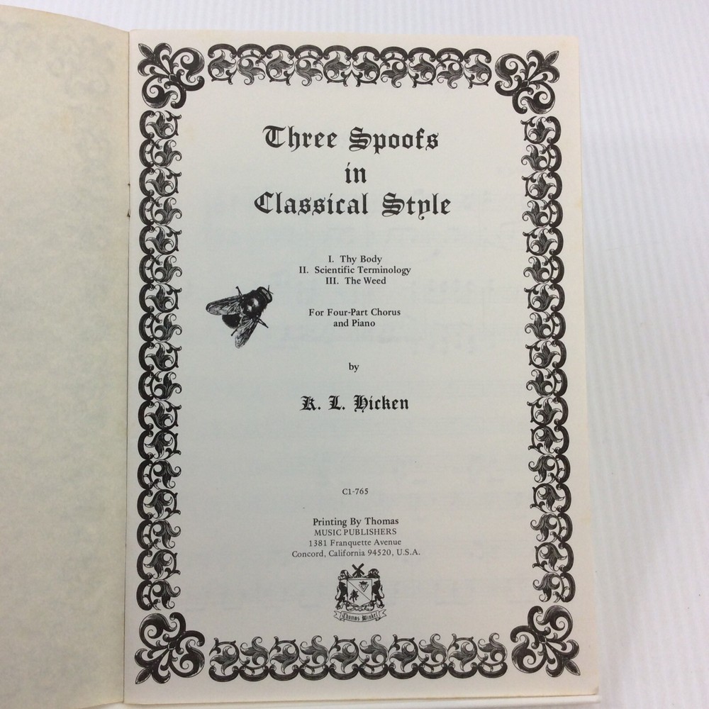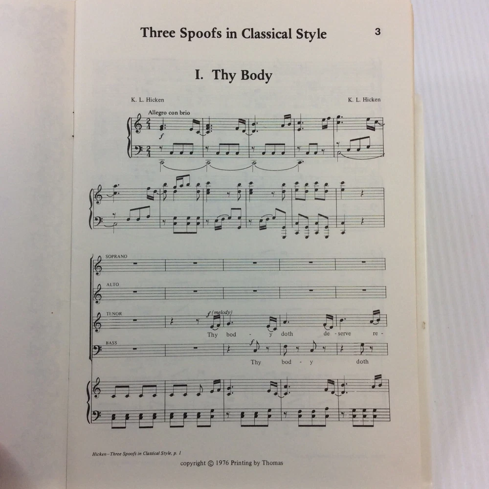 Classical SATB Choral Music Songbook Three Spoofs Hicken 1976