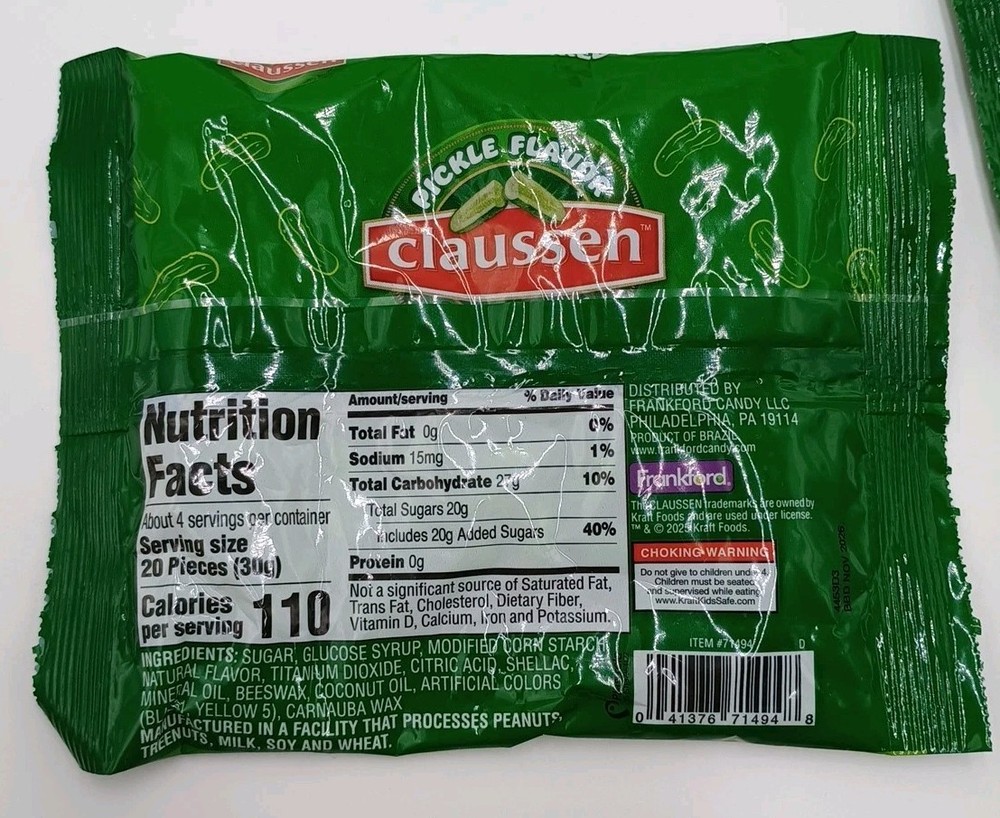 Claussen Pickle Flavor Jelly Beans 4oz Bag - Pack of 10