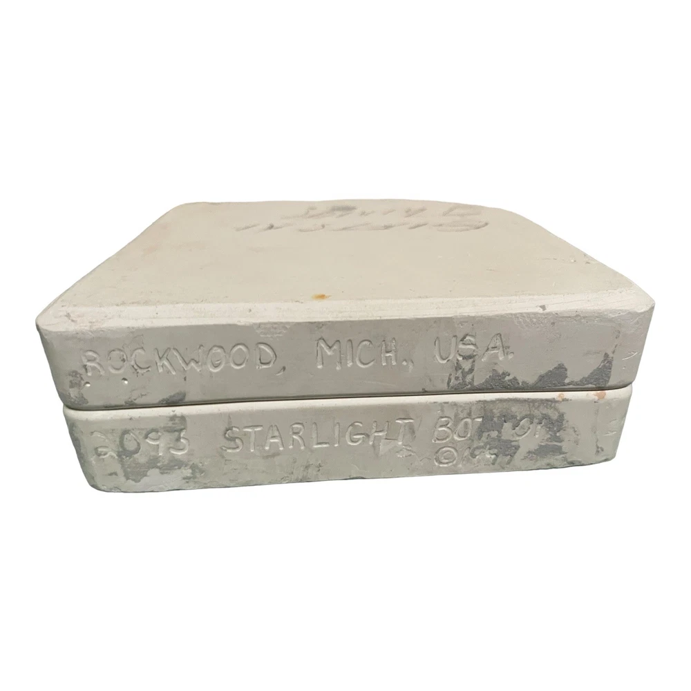 This vintage 1999 Claymagic 2093 Starlight Bottom Ceramic Mold is perfect for slip casting your own unique creations. Measuring 6.5x6.5 inches, this unit is made of durable plaster and features a beautiful starlight design. It is handmade in the United States and comes with clear instructions for use. This unit is ideal for those interested in sculpting, molding, and ceramics, and is a great addition to any collection. With its Clay Magic brand and model number 2093, it is a reliable and high-quality option for your crafting needs. Create your own one-of-a-kind pieces with this slip casting mold kit.